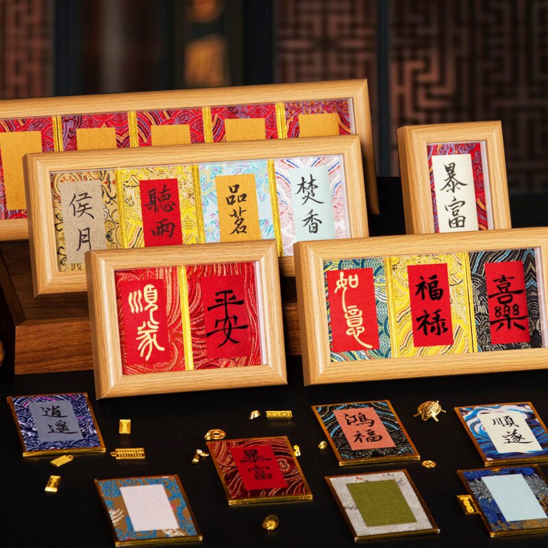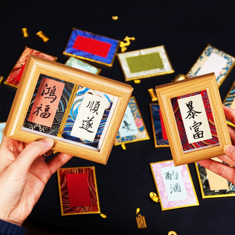 小号迷你宋锦硬卡金边卡纸空白书法摆台摆件文创diy福字纸相框毛笔字礼品国风宣纸彩色楮笺熟宣卡片桌面装饰