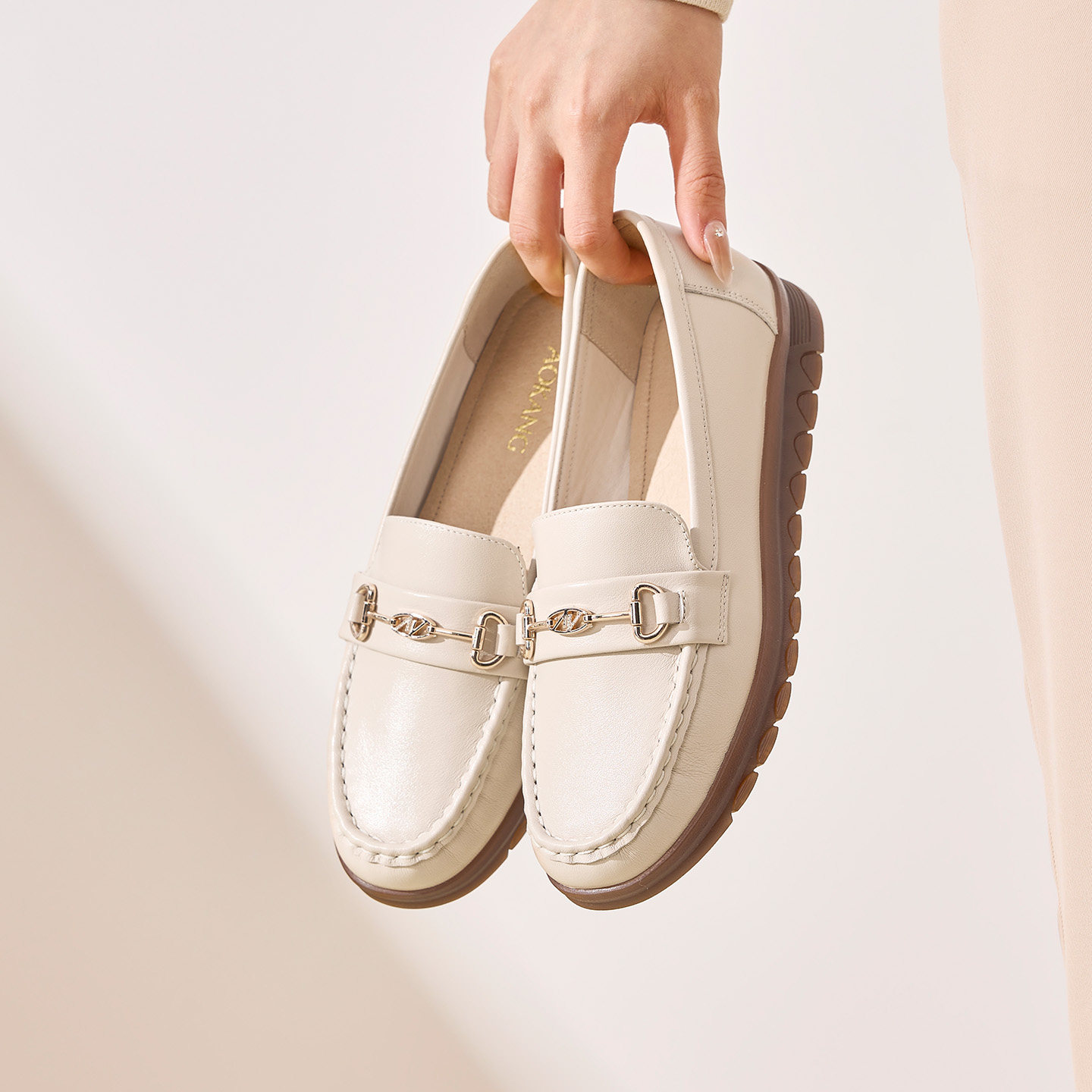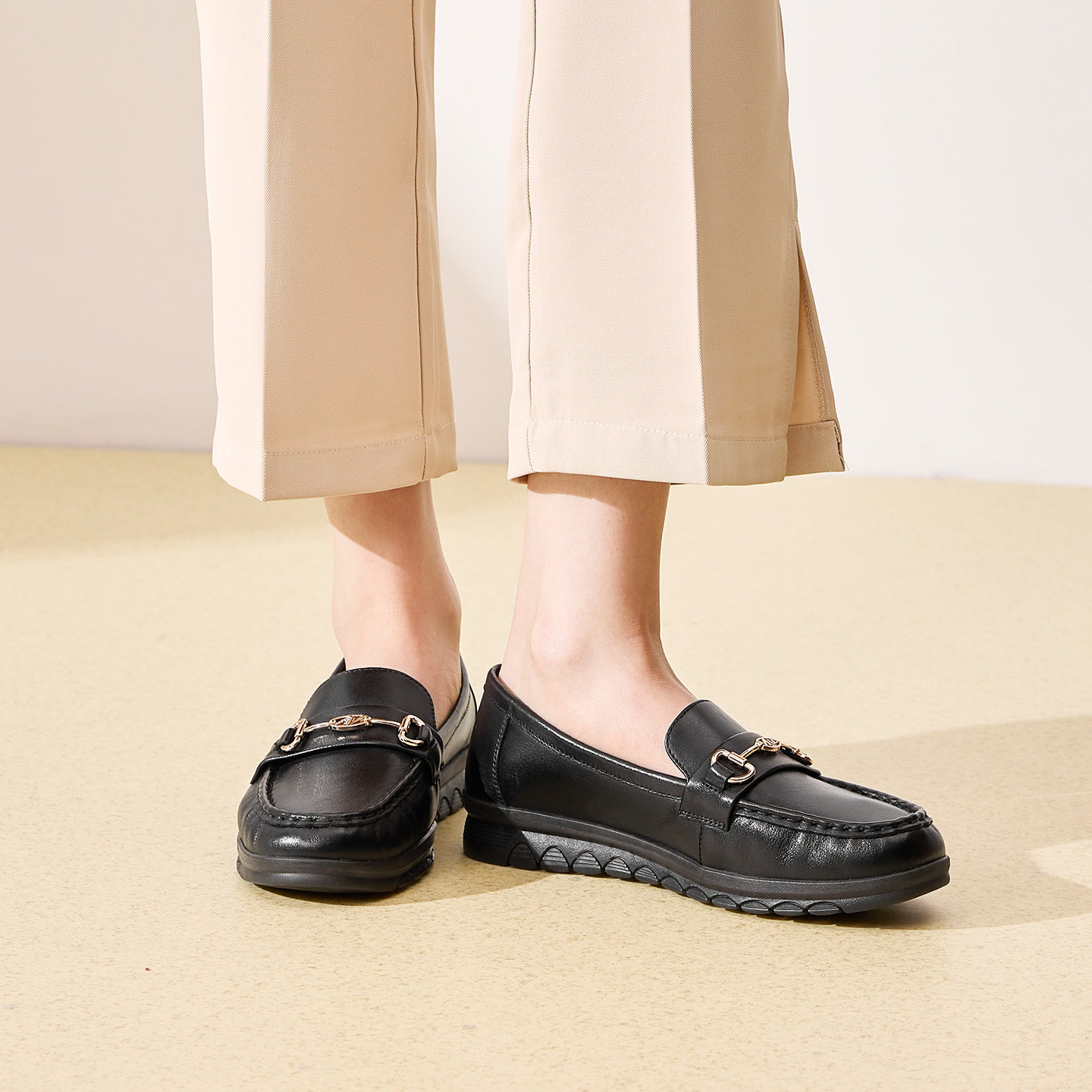 奥康 女鞋2026春季新款豆豆鞋平底套脚妈妈鞋轻便中年鞋门店发货