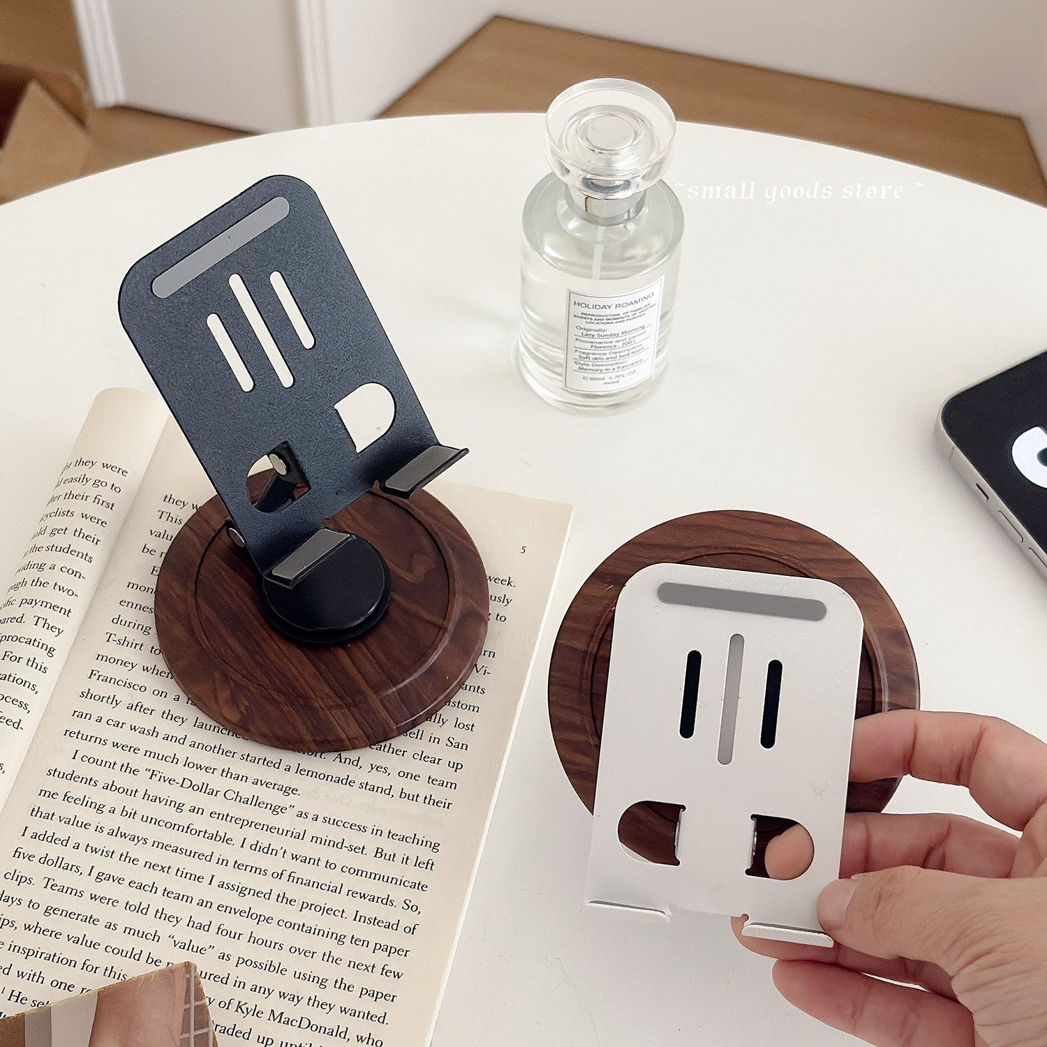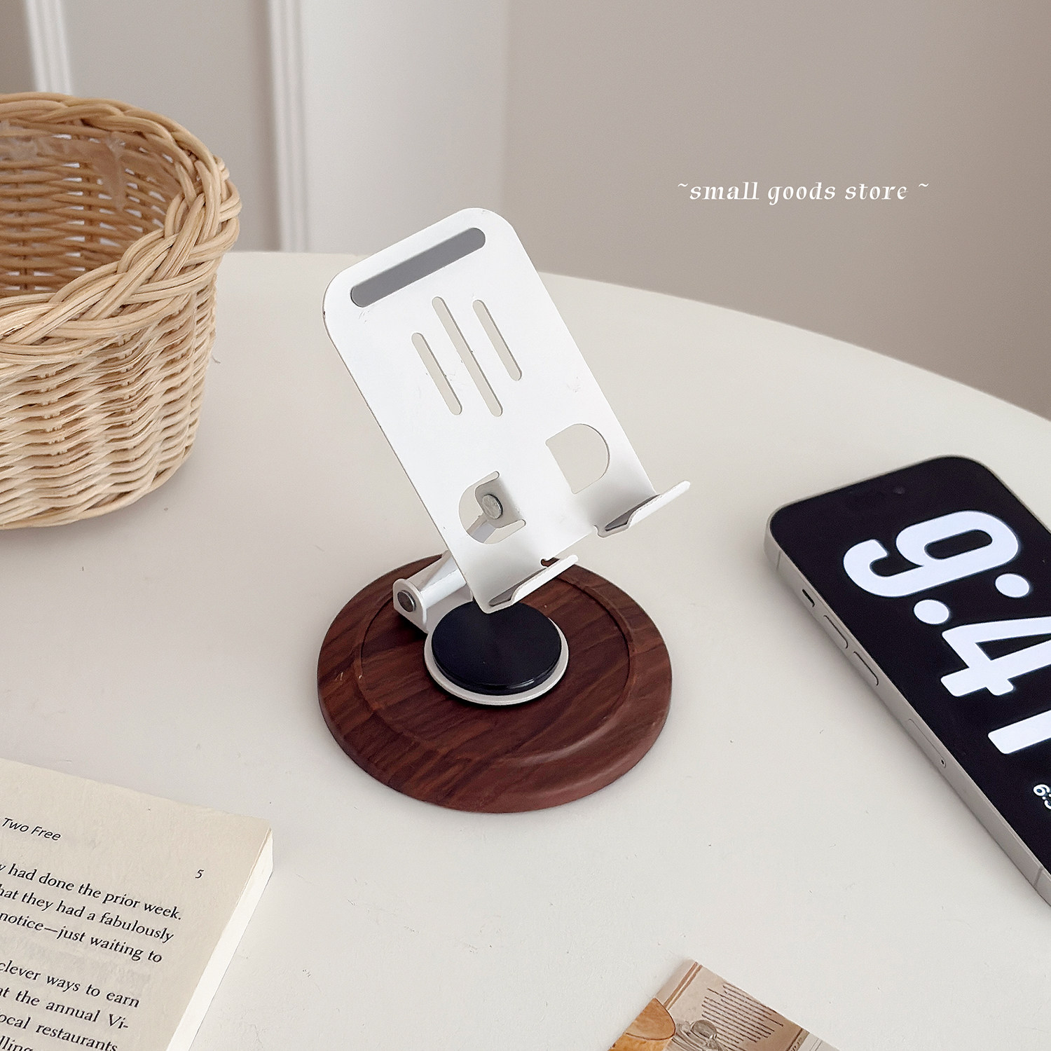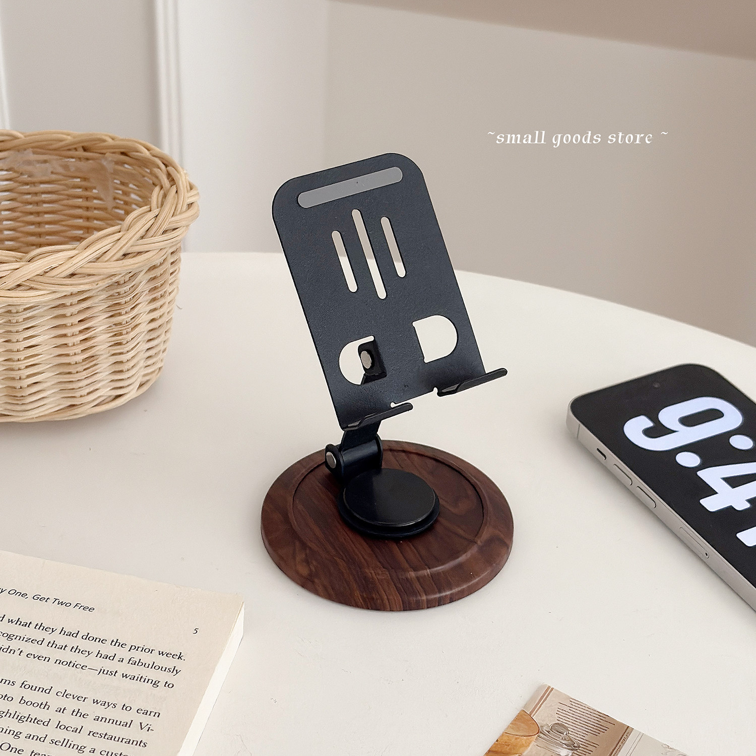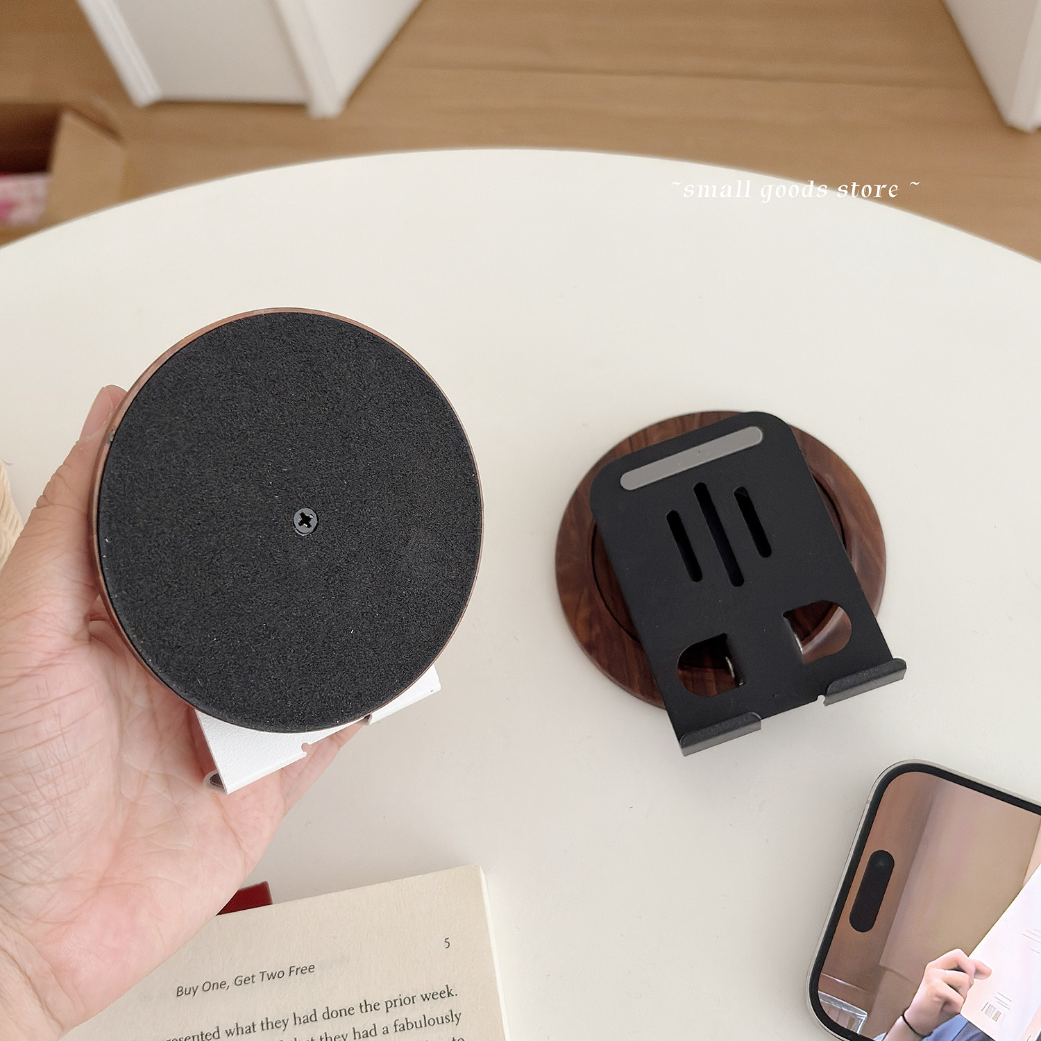 轻便便携式手机支架 360度旋转木纹色复古手机支架桌面直播追剧架