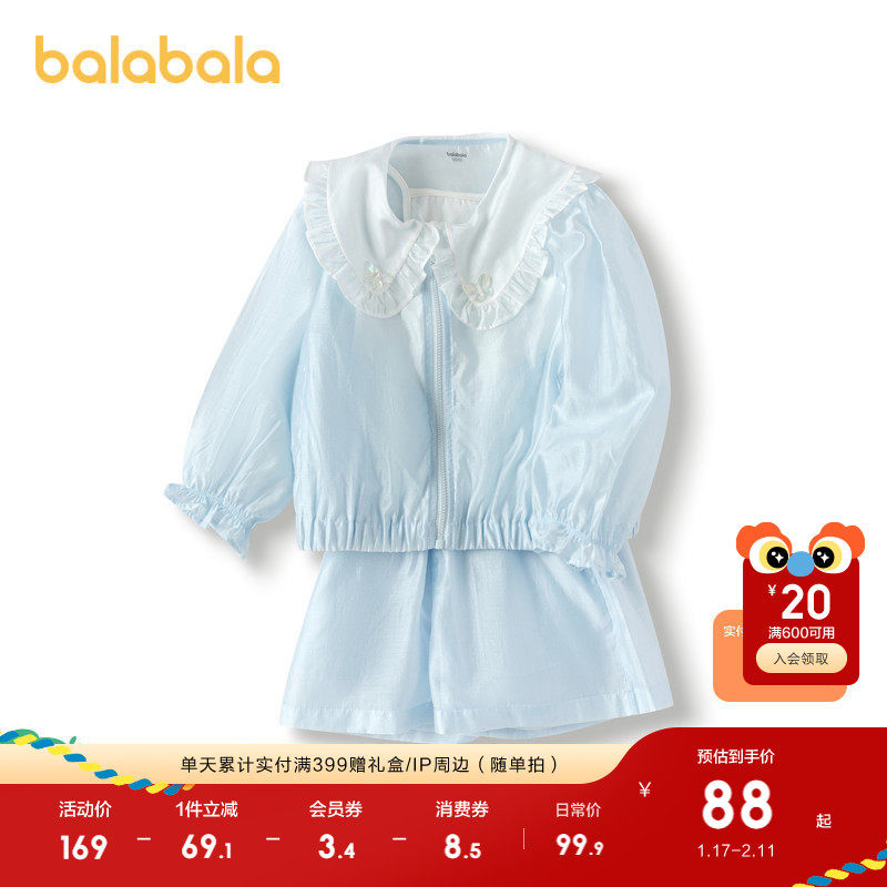 巴拉巴拉童装儿童短袖套装女童三件套轻薄款夏装小童宝宝衣服时尚
