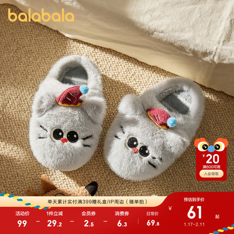 巴拉巴拉儿童棉拖鞋男女童宝宝2025室内鞋子秋冬保暖棉鞋动物萌趣
