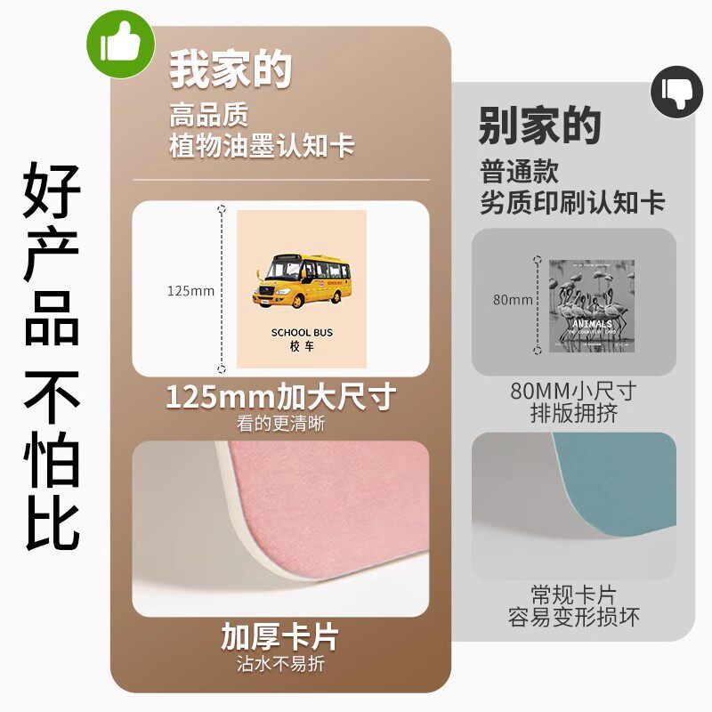 宝宝认知卡片婴幼儿早教启蒙书动物挂图数字看图识物儿童闪卡玩具
