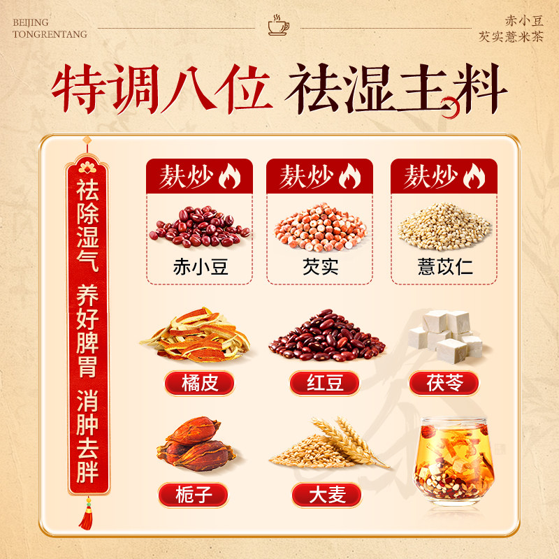 北京同仁堂赤小豆芡实红豆薏米茯健苓脾祛湿茶去拍湿气毒养生茶包