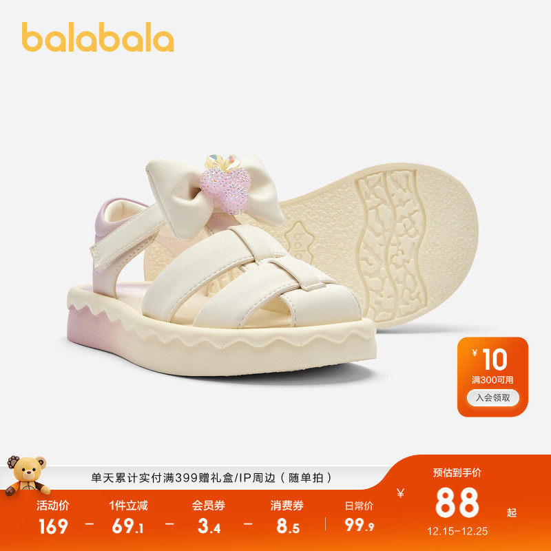 巴拉巴拉童鞋女童凉鞋小童儿童罗马鞋蝴蝶结沙滩鞋夏季休闲鞋甜美