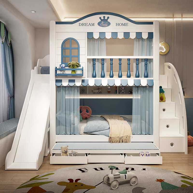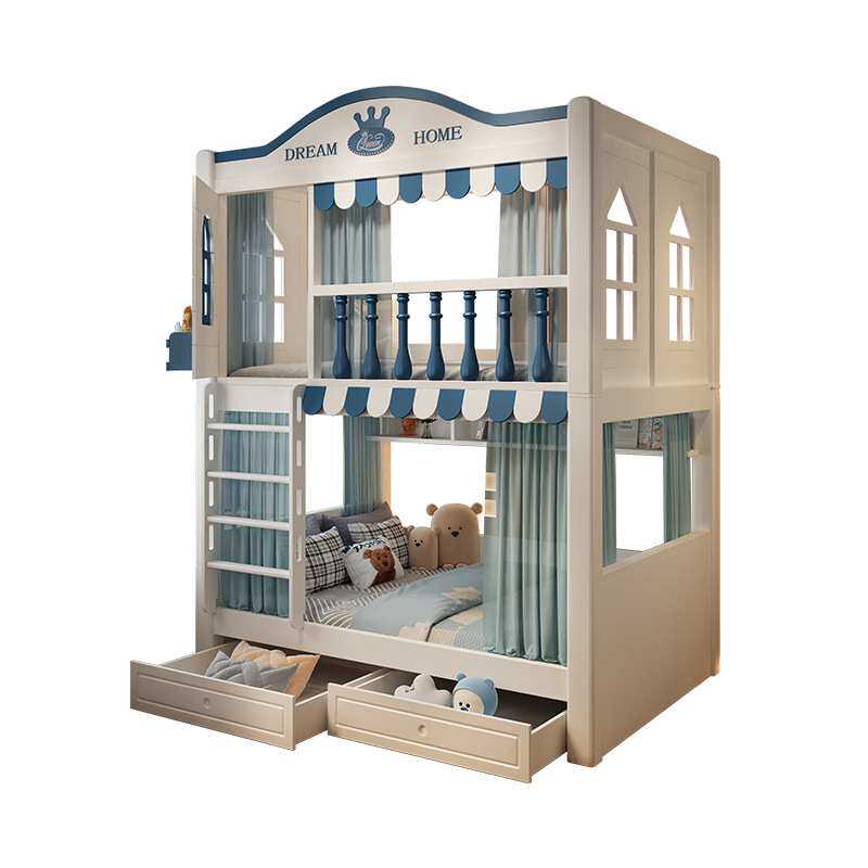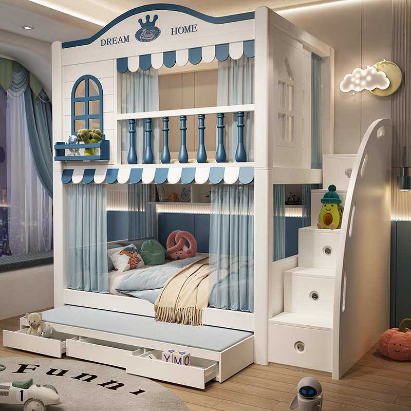 儿童床男孩上下床双层床同宽上下铺高箱高低子母高护栏树屋床书架
