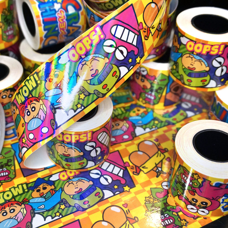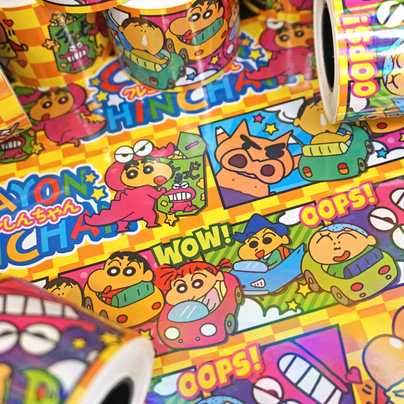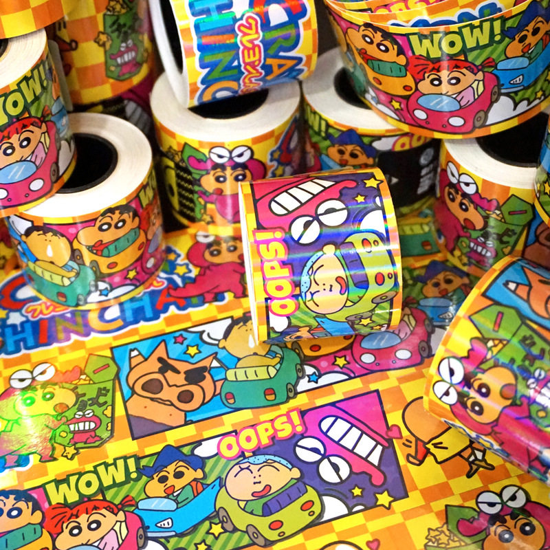 镭射闪光炫彩卡通可爱蜡笔小新动漫潮玩贴纸装饰笔记本电脑玻璃门鱼缸吉他电动车摩托车防水行李箱贴画5米diy