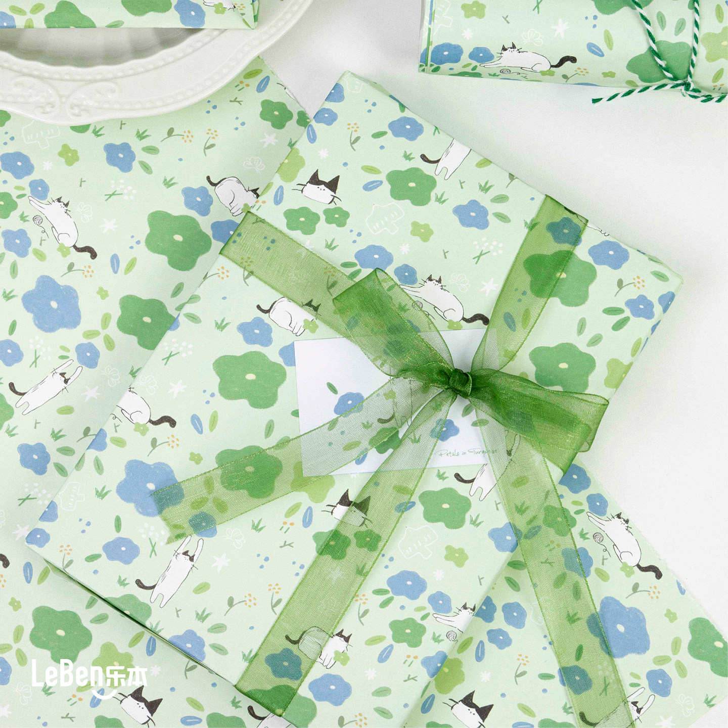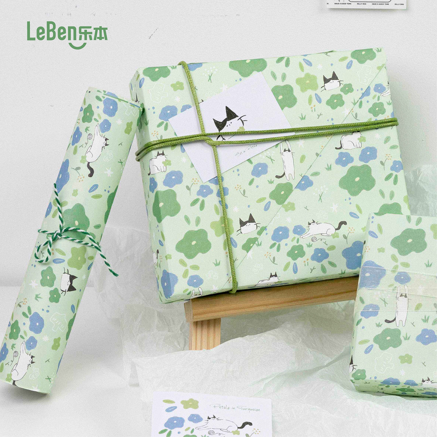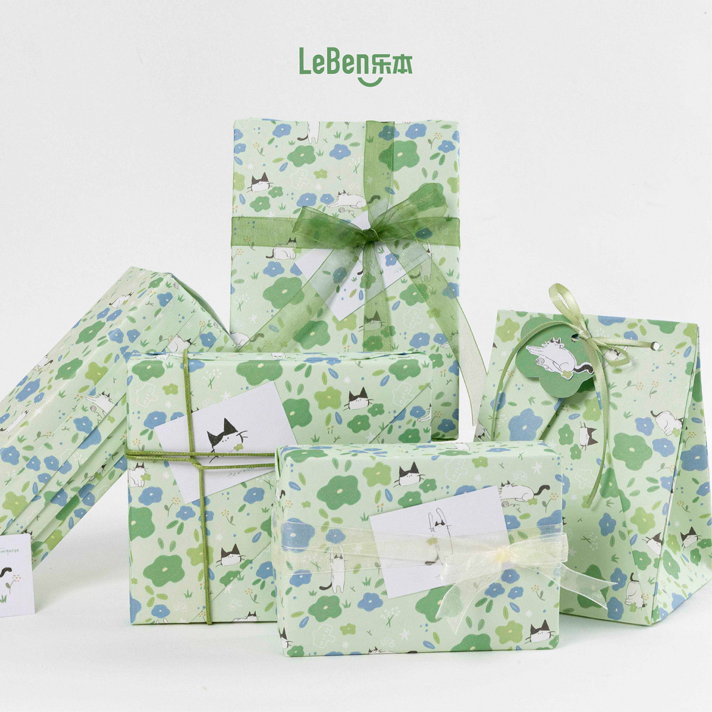 乐本·送你一片猫薄荷包装纸礼物纸礼品高级感生日礼盒卡通儿童包书皮纸手账素材纸少女心花束打包纸大尺寸