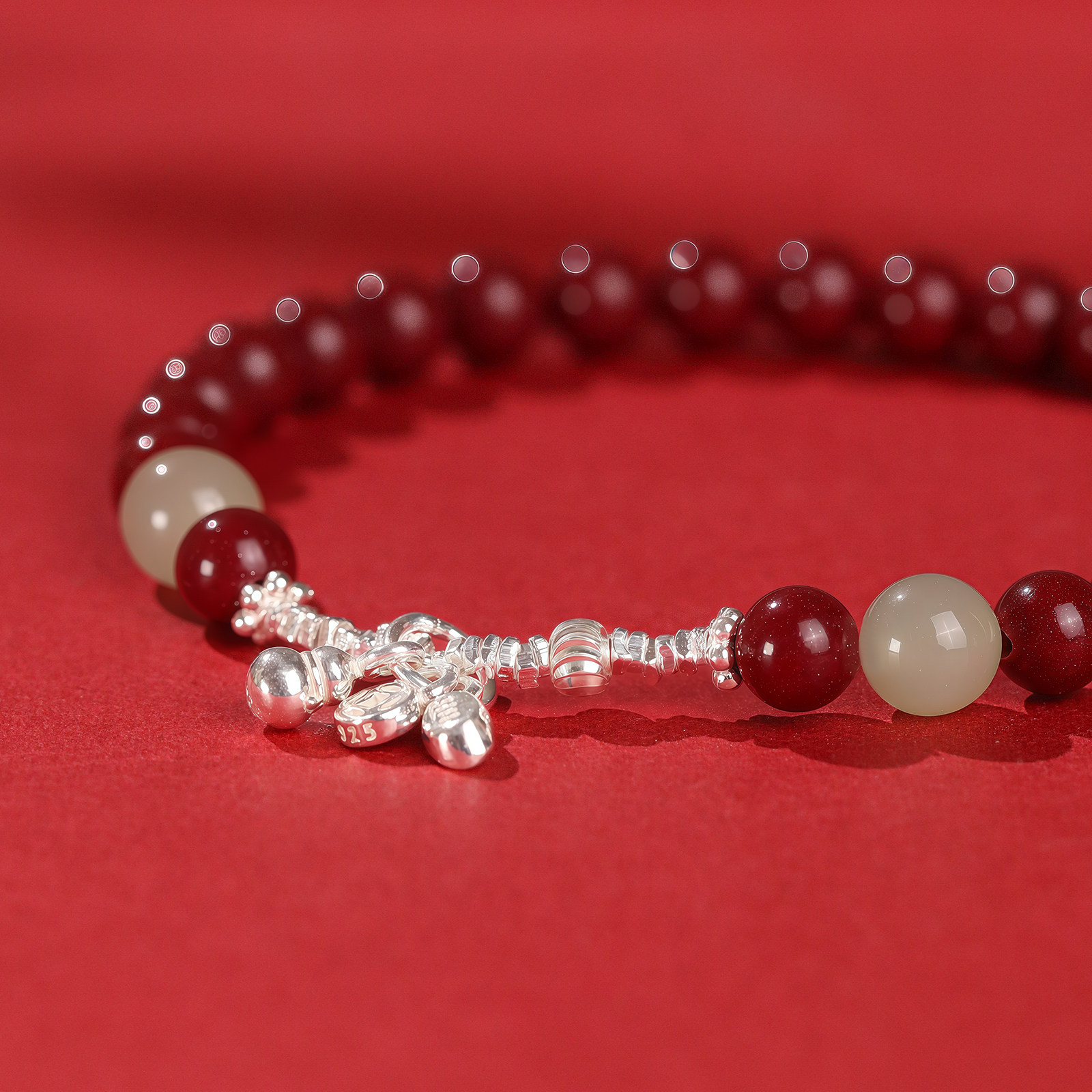 天然和田玉纯银女手链编织绳朱砂福葫进宝马本命年红手绳礼物精致