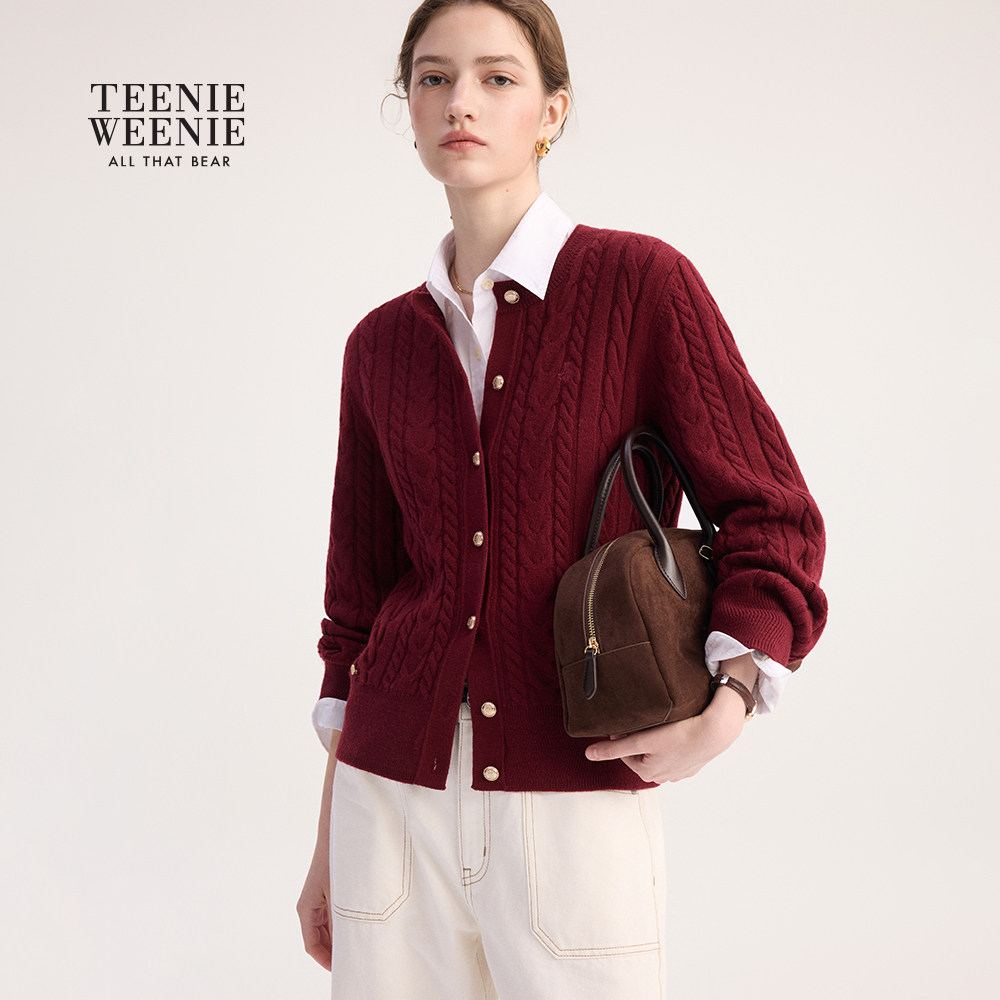 【赵露思同款丨四季绞花】TeenieWeenie小熊女冬季绵羊毛羊绒开衫