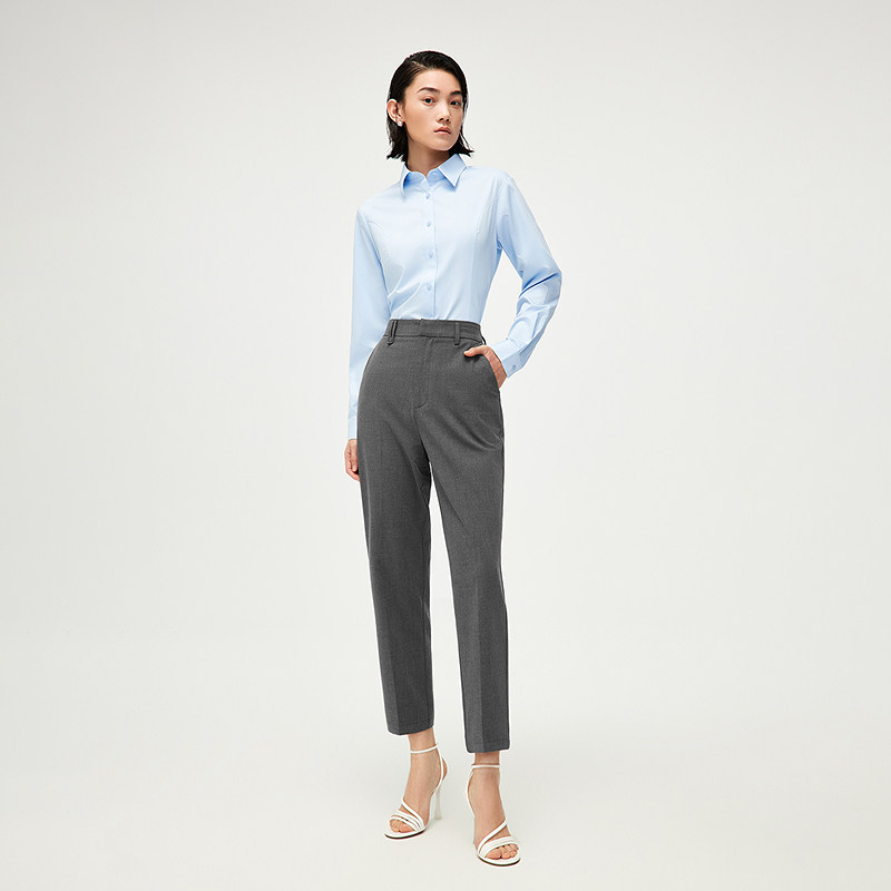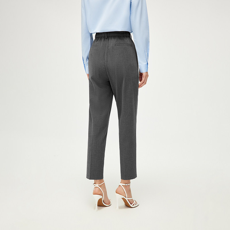HLA/海澜之家松紧腰西裤2025春秋新款利落修身商务通勤锥形裤女装