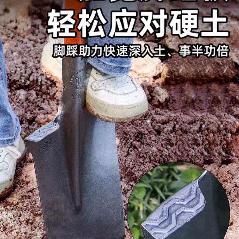军印铁锹尖铲锰钢铁锨农用铁锹户外种菜挖土松土神器挖树专用泥锹