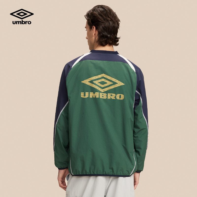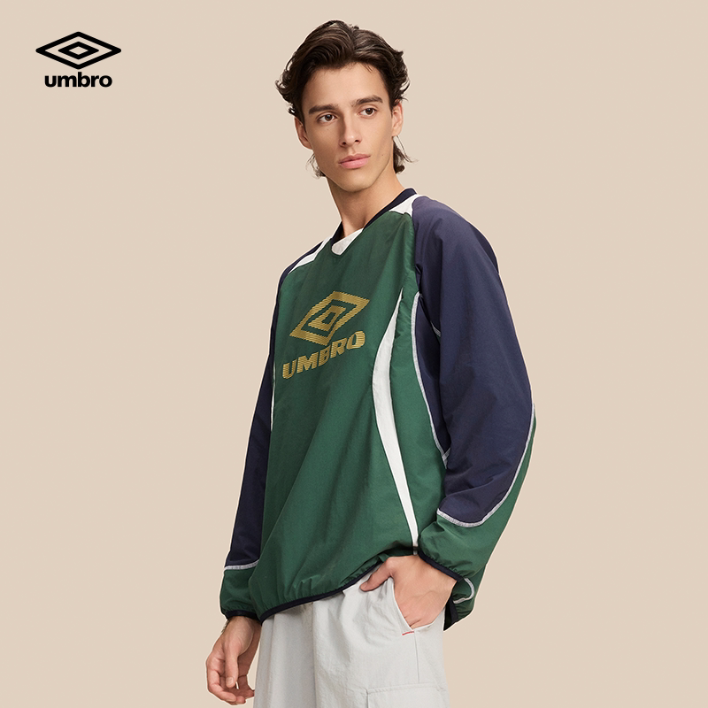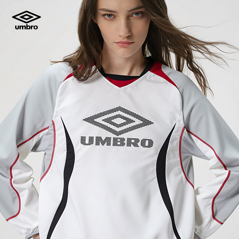 umbro茵宝官方长袖T恤衫春季男女同款足球BlokeCore风大LOGO拼接T