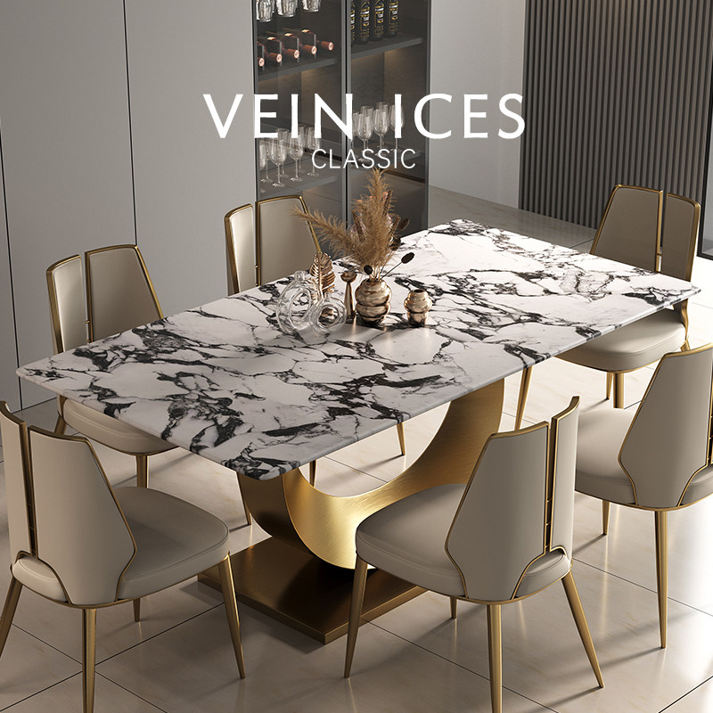 2025新款高级感意式轻奢宝格丽白大理石圆形餐桌可带转盘别墅