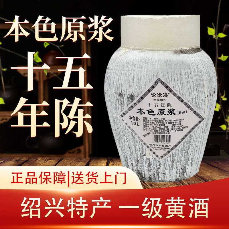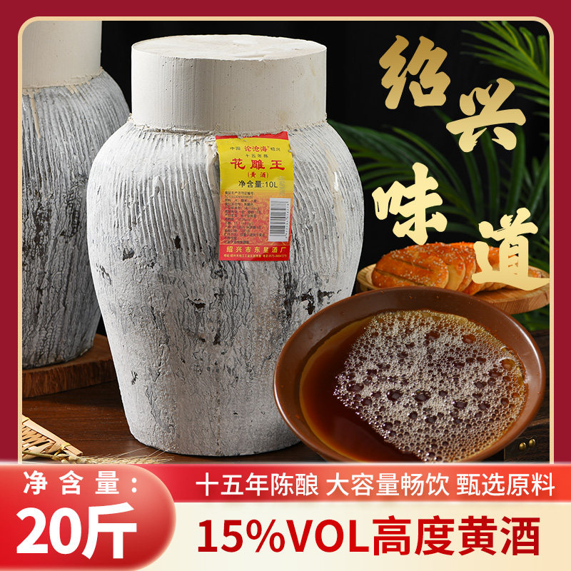 绍兴花雕王黄酒10L超大坛装十五年陈15度绍兴黄酒家庭自饮首选
