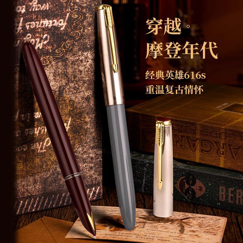 英雄牌钢笔616S/329-2经典复古怀旧老款学生专用练字铱金笔成人商务书法暗尖可换墨囊墨水笔吸墨打磨总厂特细
