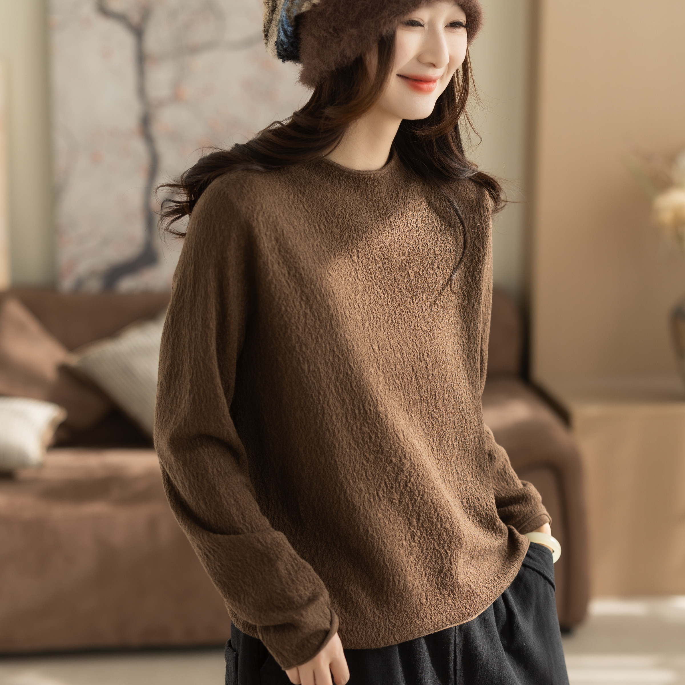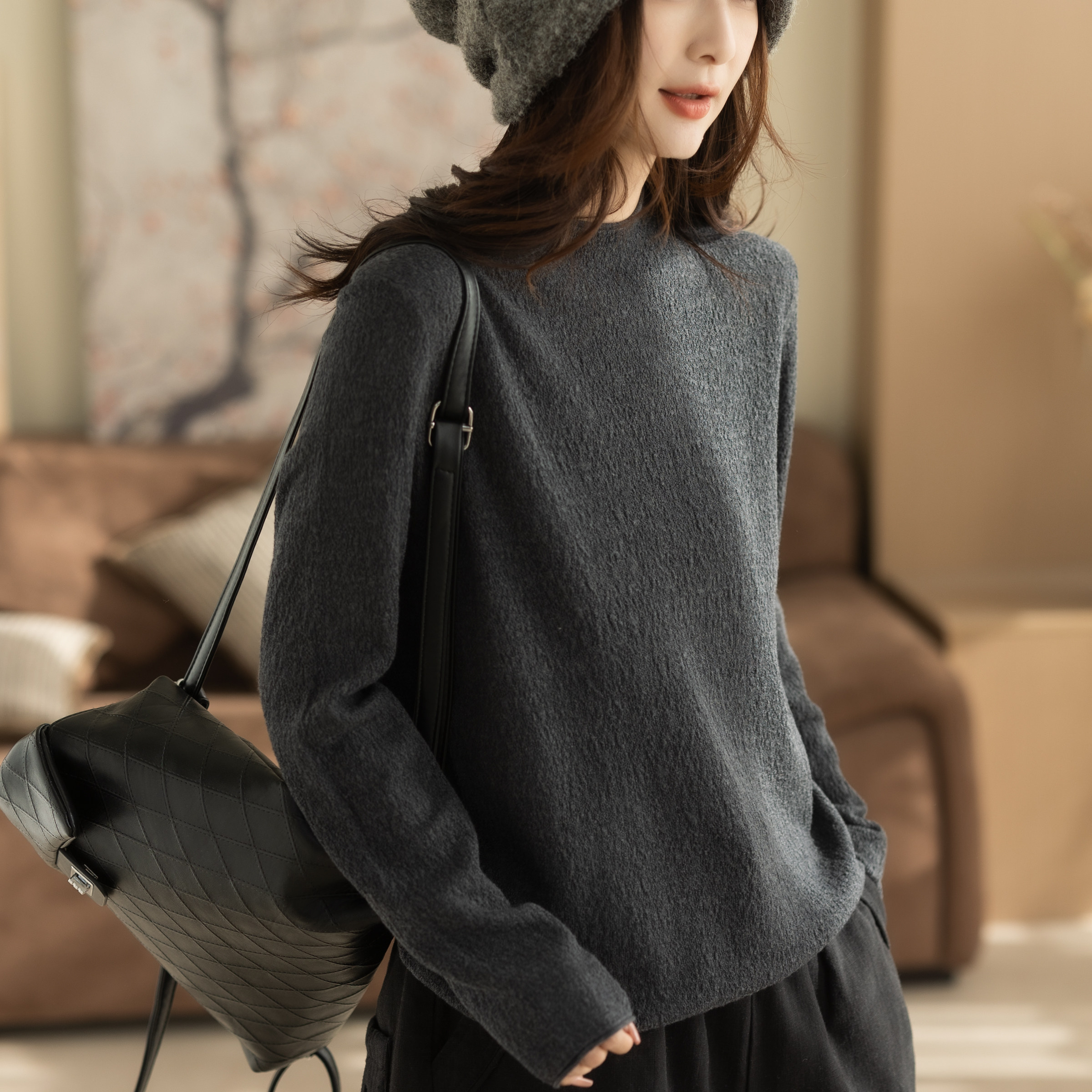 咖咪羽打底衫女30%天丝休闲圆领通勤羊绒复古宽松流行好看女装潮