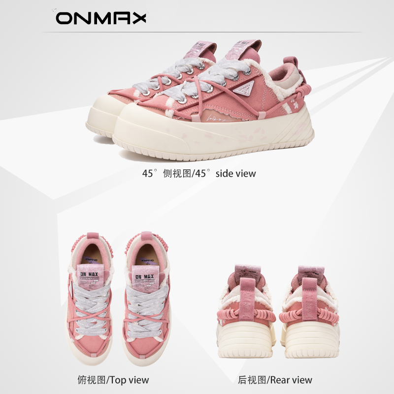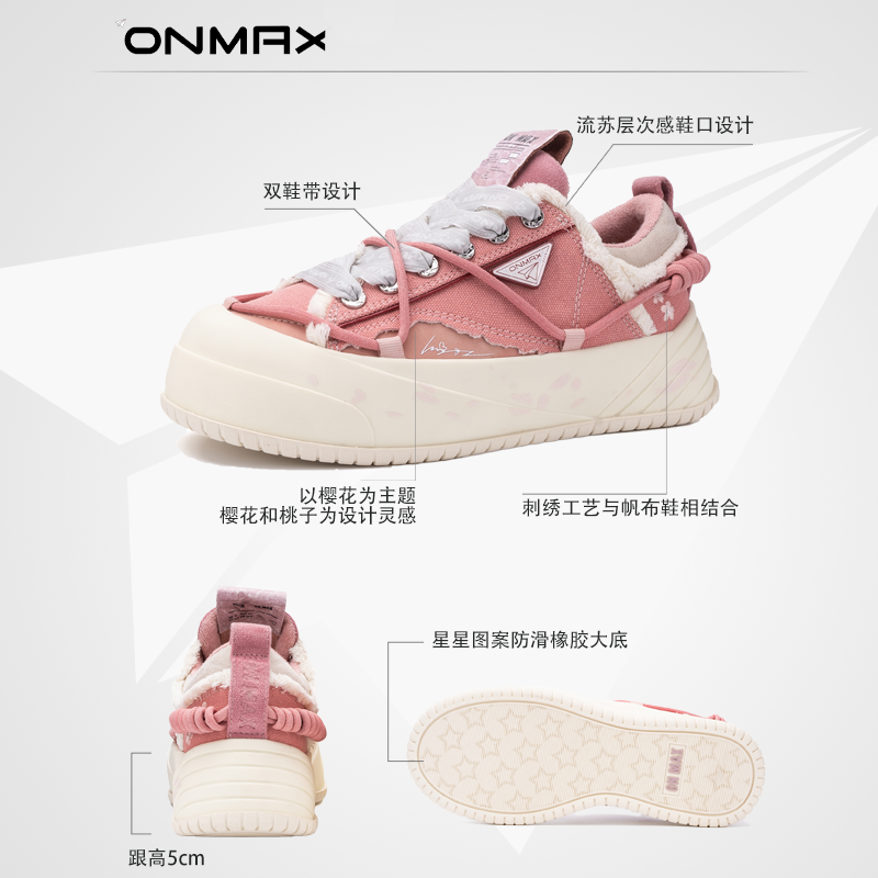【汪苏泷同款】onmax樱花粉纸飞机帆布鞋2026新款冬厚底增高男女