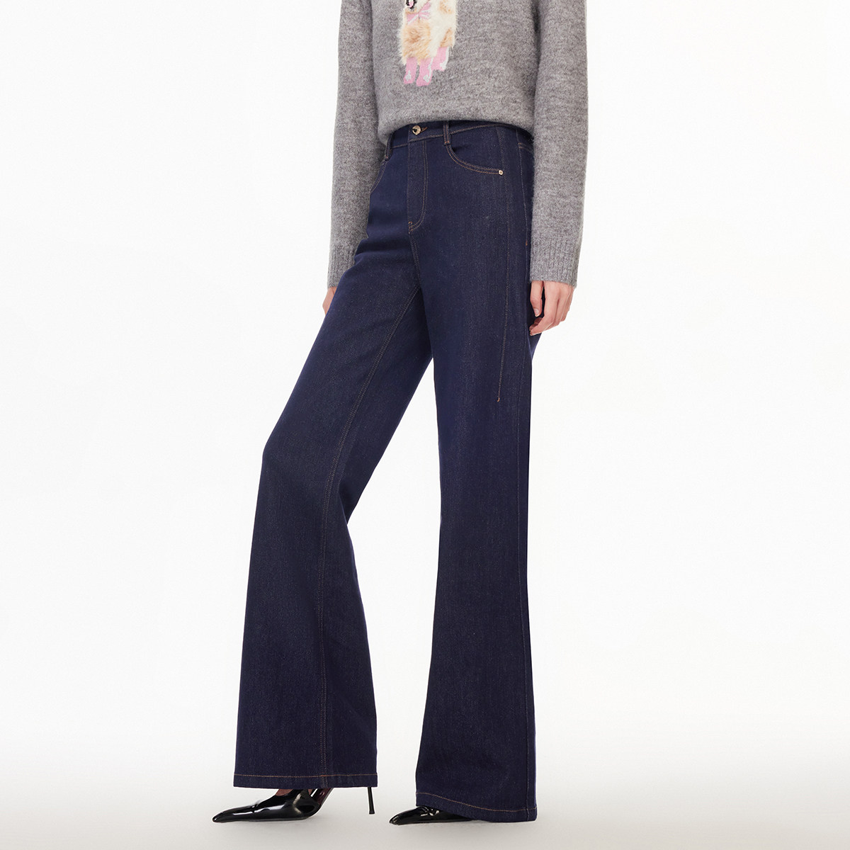twosweet【超级裤神】四面弹重塑大长腿高腰直筒微喇叭原色牛仔裤