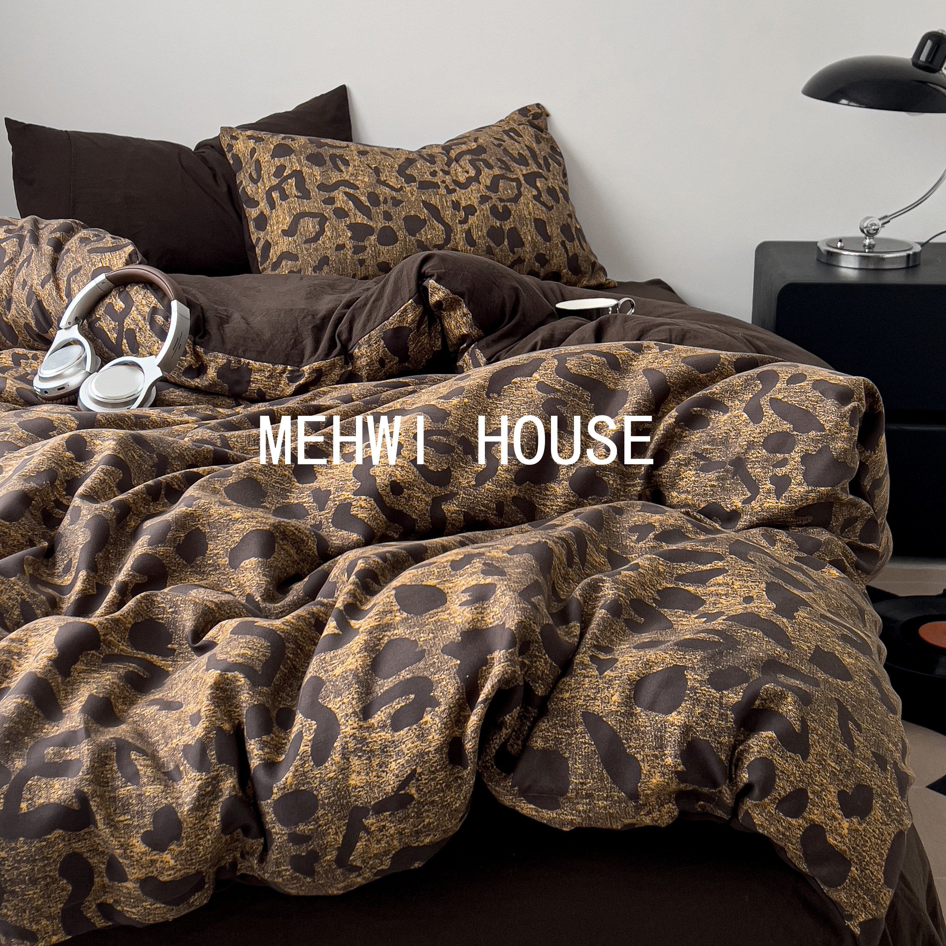 【MEHWI】ins豹纹美式复古美拉德轻奢简约亲肤四季款三件套四件套