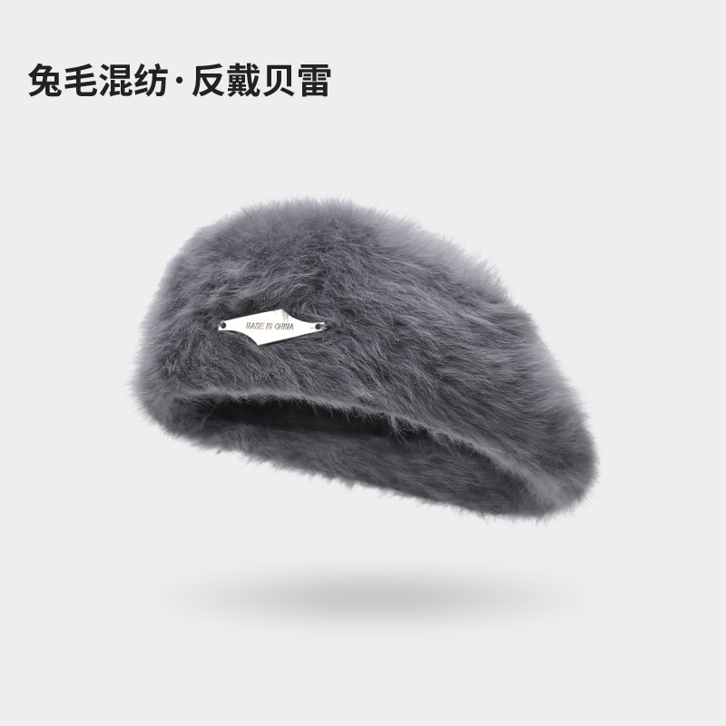 Classy key新加坡设计师联名款显脸小气质贝雷帽子毛绒反戴前进帽