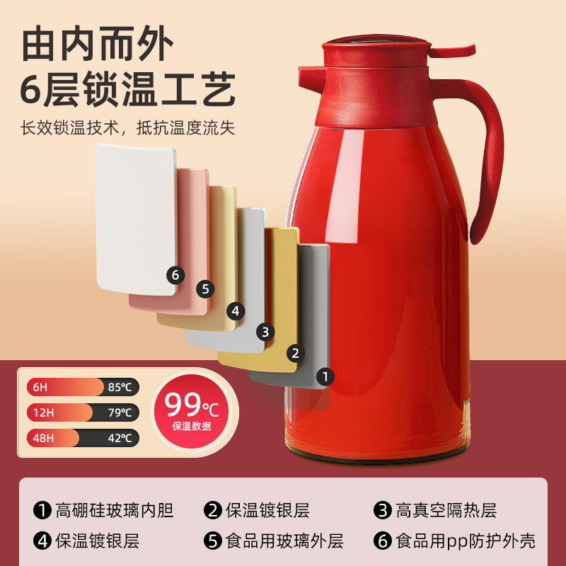 保温壶结婚陪嫁老式玻璃暖壶红色水壶家用大容量热水瓶长效外壳