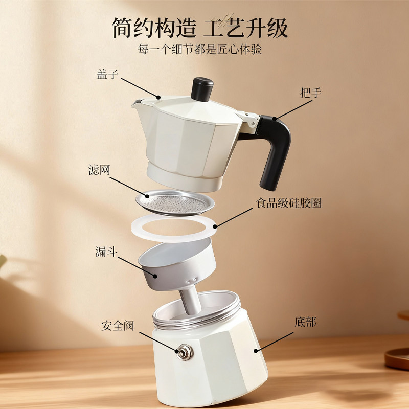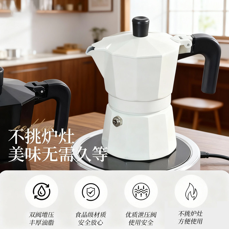 双阀摩卡壶双阀三代阀咖啡壶意式浓缩咖啡机家用煮咖啡壶咖啡器具