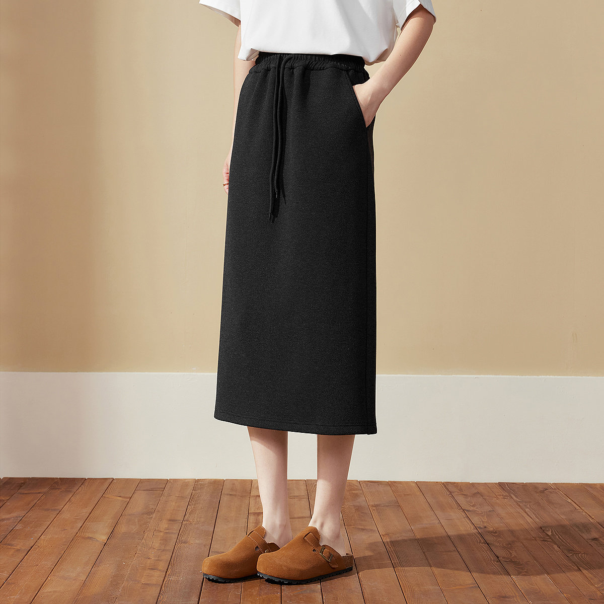 SIINSIIN直筒裙加绒2025年新款高腰收腹半身裙女黑色显瘦A字裙tk