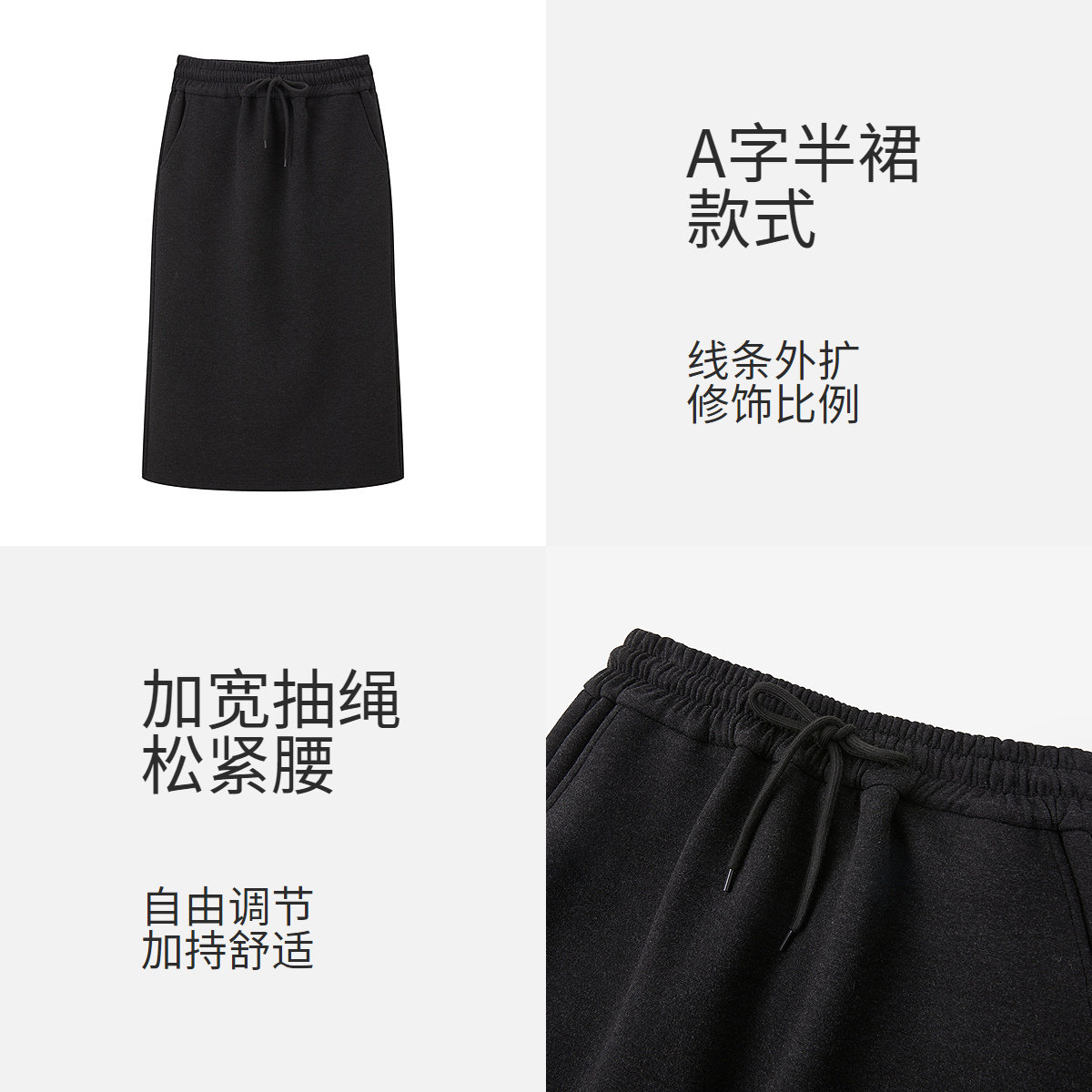 FINITY菲妮迪半身裙2024冬季新款简约高腰黑色中长款A字半裙女