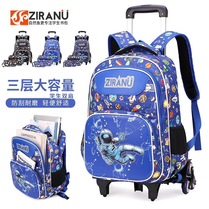 小学生书包男儿童三到六年级拉杆书大容量包超轻背包爬楼梯可拆卸