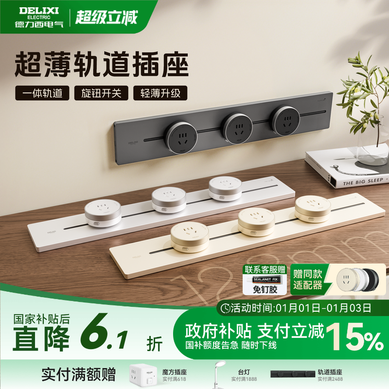 德力西官方旗舰店轨道插座滑轨插排超薄移动电源插座家用明装厨房
