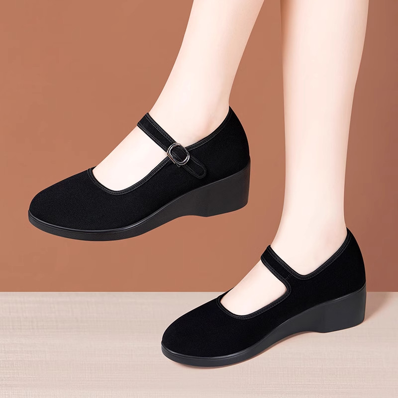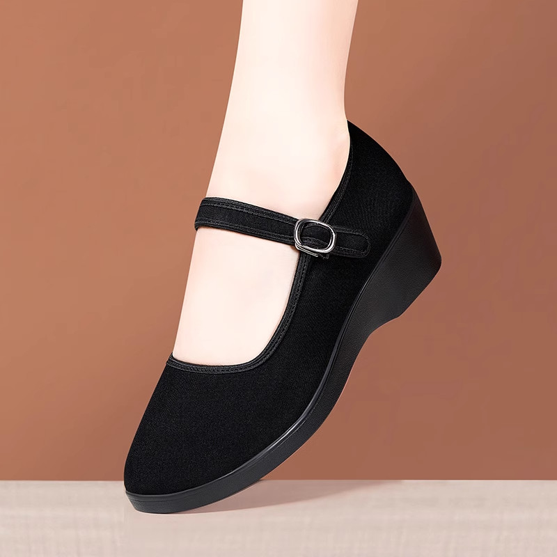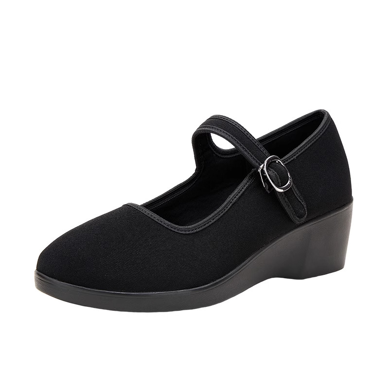 坡跟布鞋春季酒店黑色工作鞋女舞蹈鞋防滑平底鞋软底妈妈鞋中跟