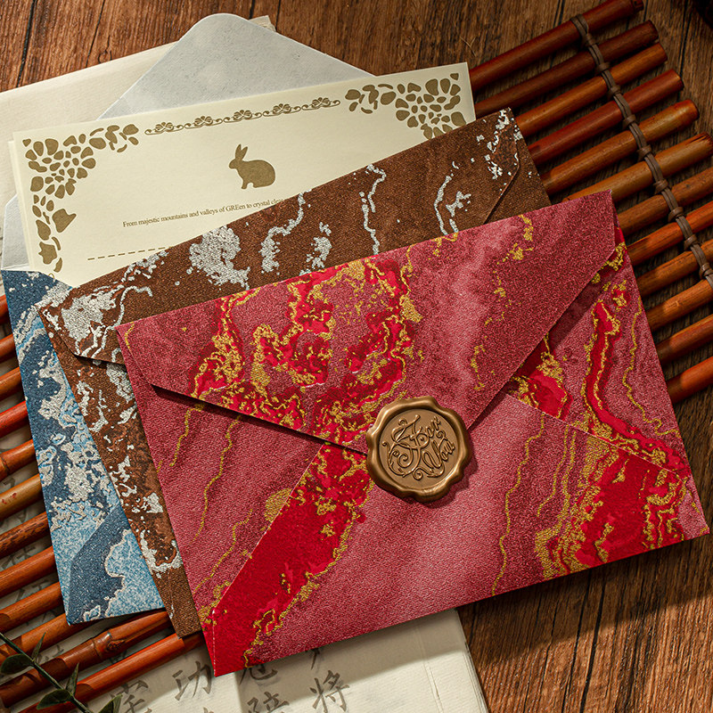 艾黎鎏金信封信纸套装浮雕纹理高级感浪漫手写情书表白七夕情人节送男生女朋友生日祝福邀请函教师节送老师