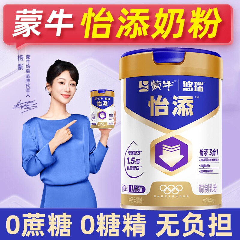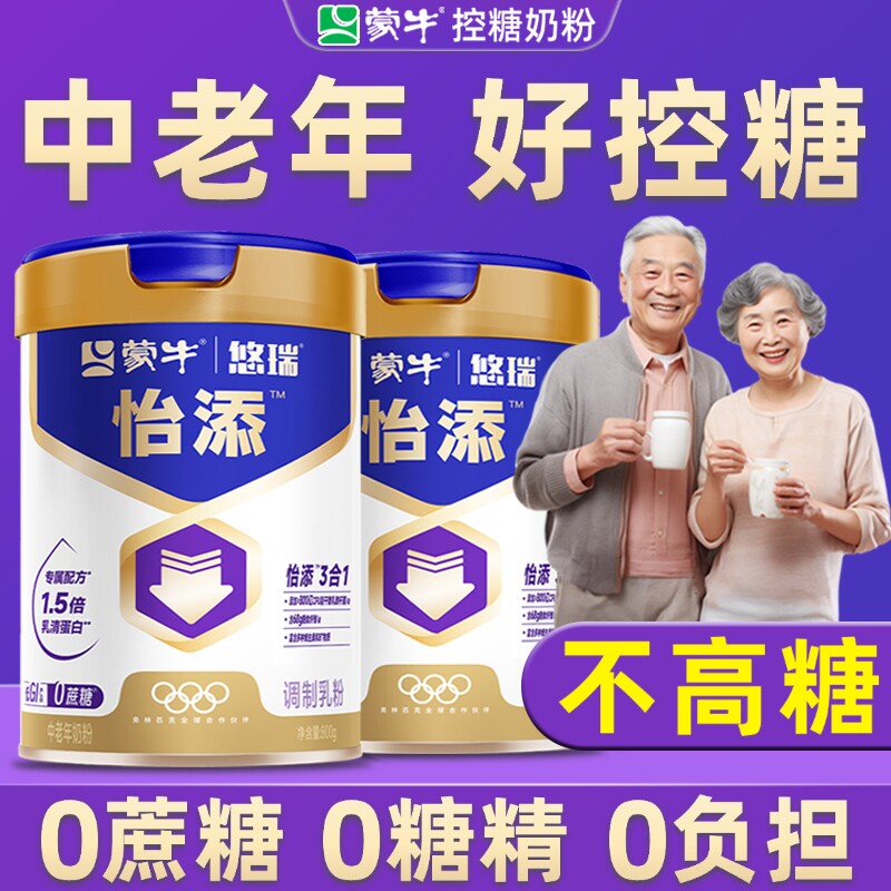 蒙牛怡添中老年奶粉高钙无蔗糖无糖精控糖营养奶粉正品官方旗舰店