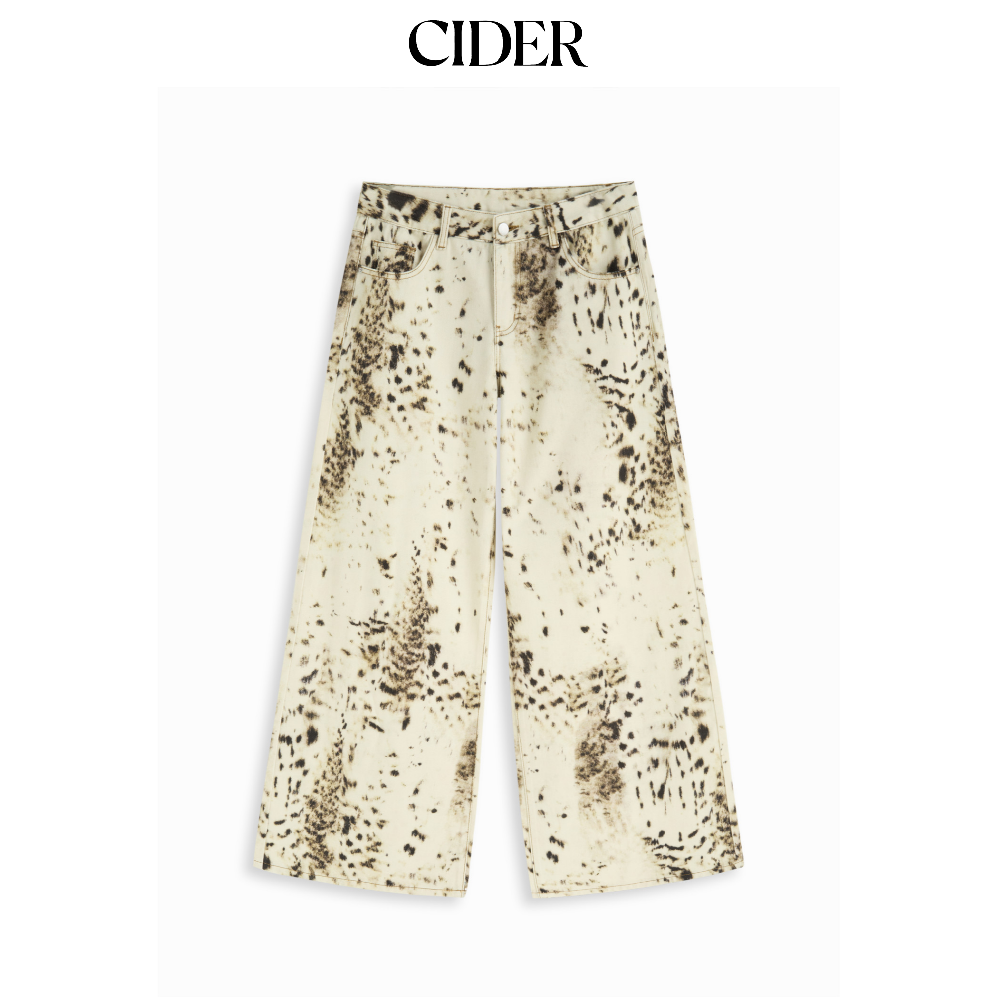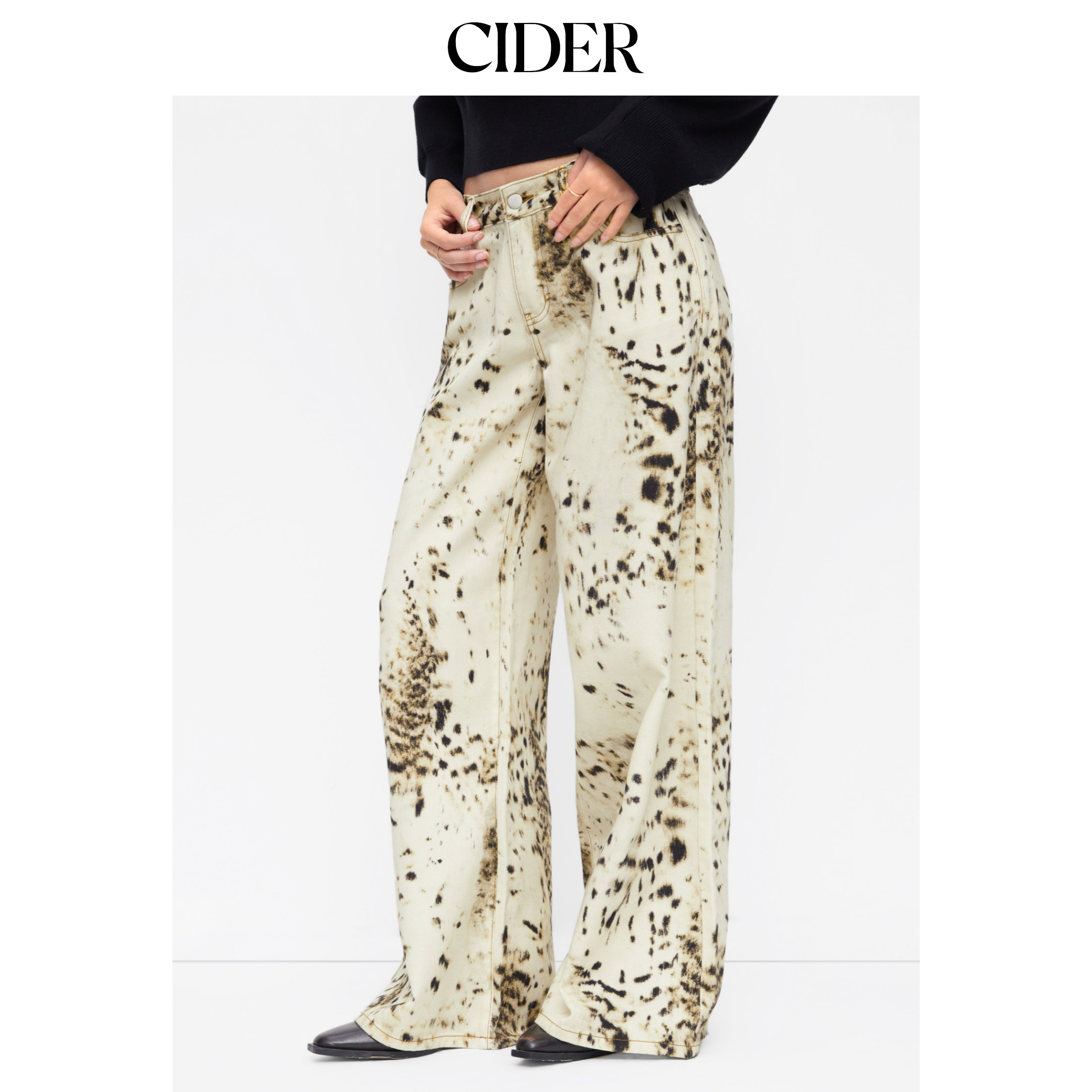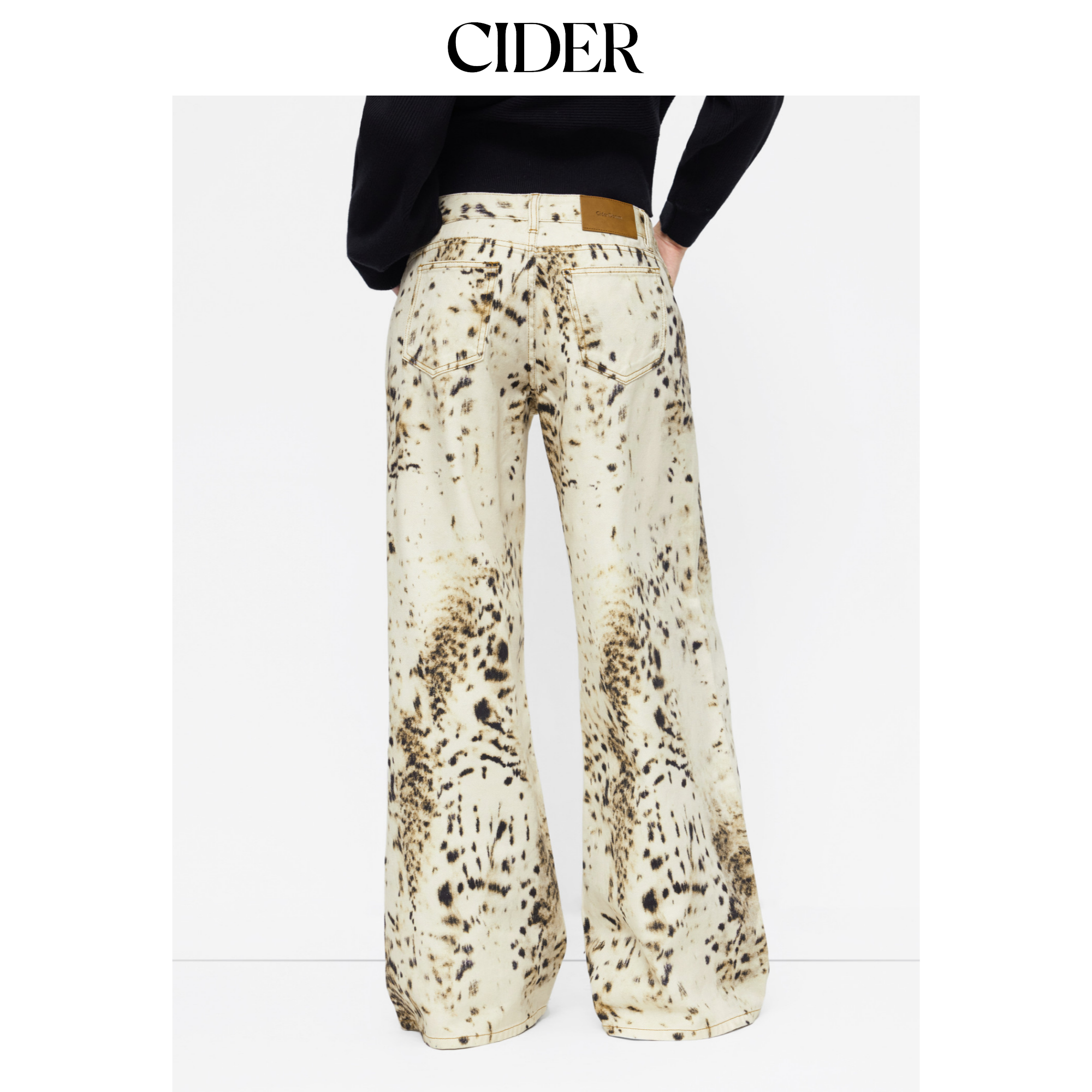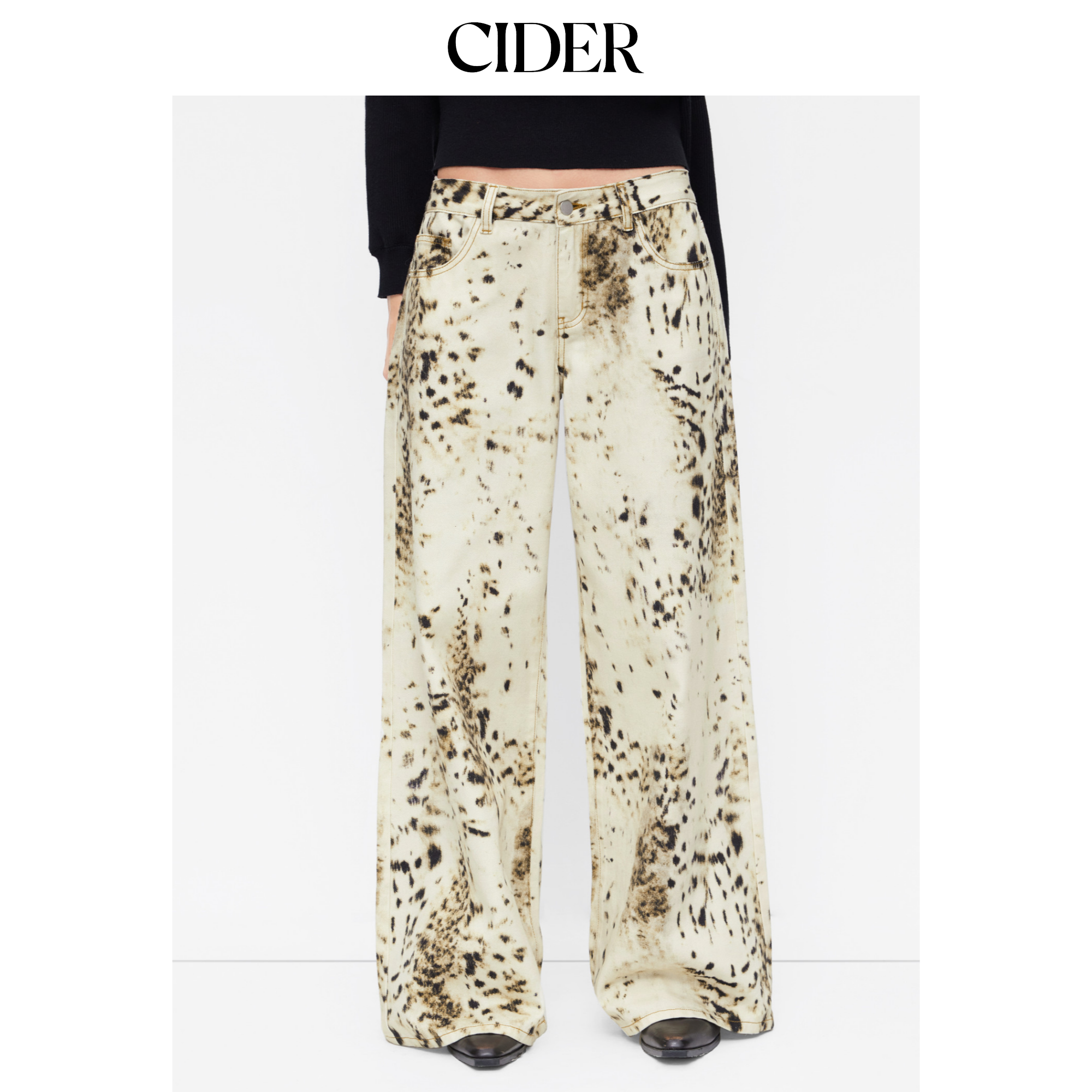 CIDER豹纹低腰阔腿宽松牛仔八分裤115061656