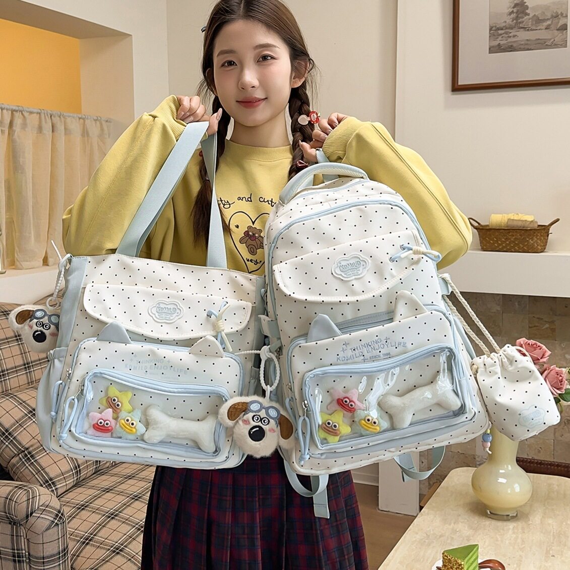 日系ins新款高颜值清新甜美吧唧痛包女中学生轻便大容量双肩包