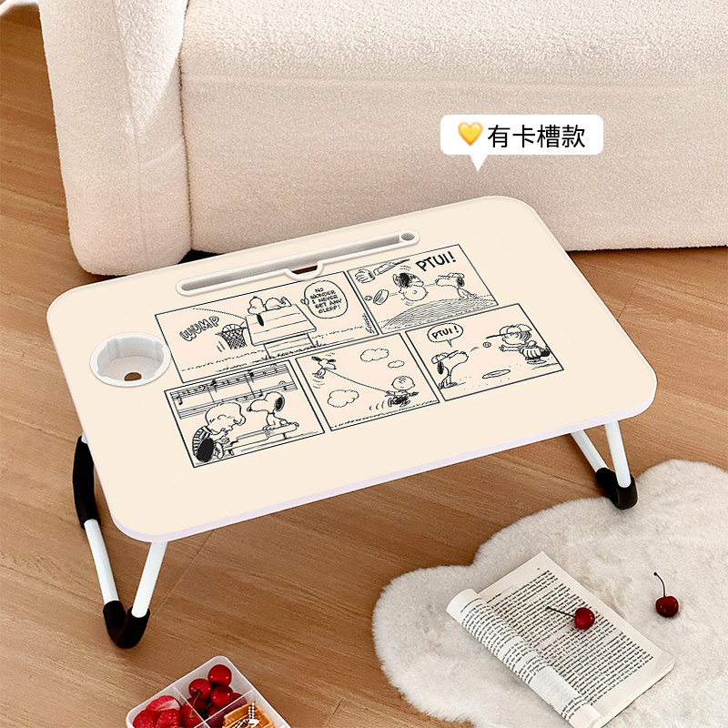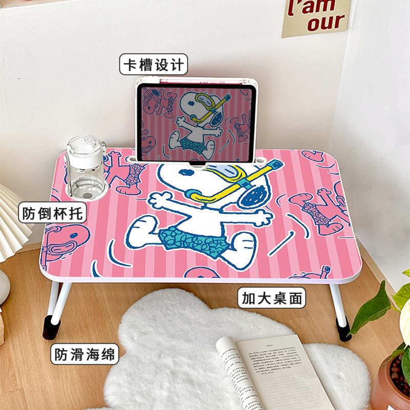 史努比学生宿舍床上折叠桌懒人家用可爱卡通儿童写字台学习小桌子笔记本电脑便携小桌板膝上桌书桌课桌床用桌
