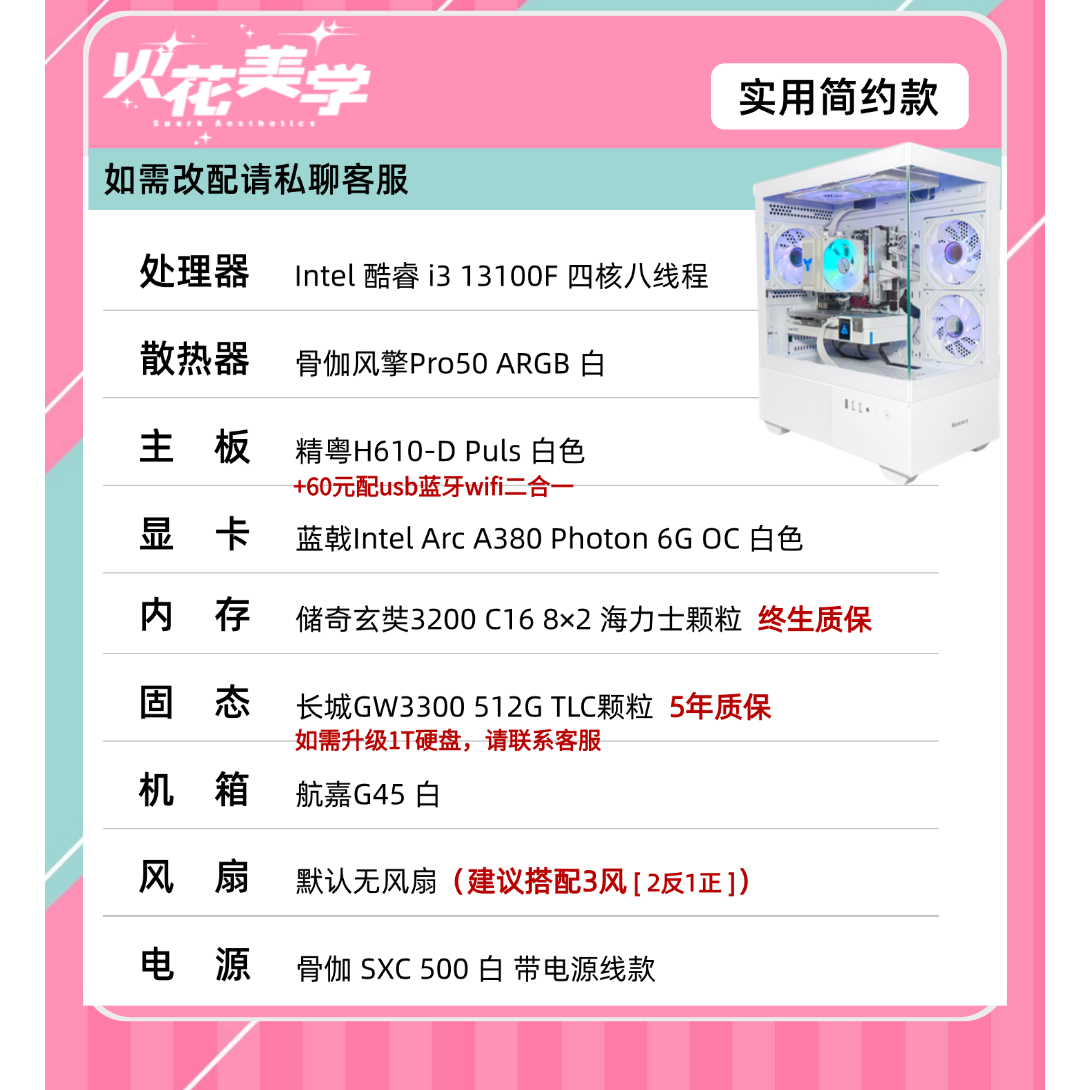 3000元定制主机 13100F+A380 高性价比 DIY游戏电脑主机整机