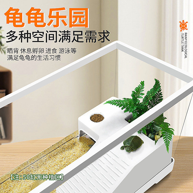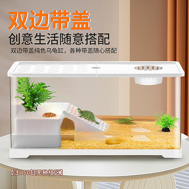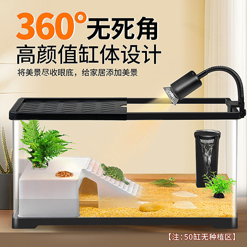 乌龟缸饲养缸带盖生态龟缸高透明不雾化饲养箱晒背灯带晒台小鱼缸