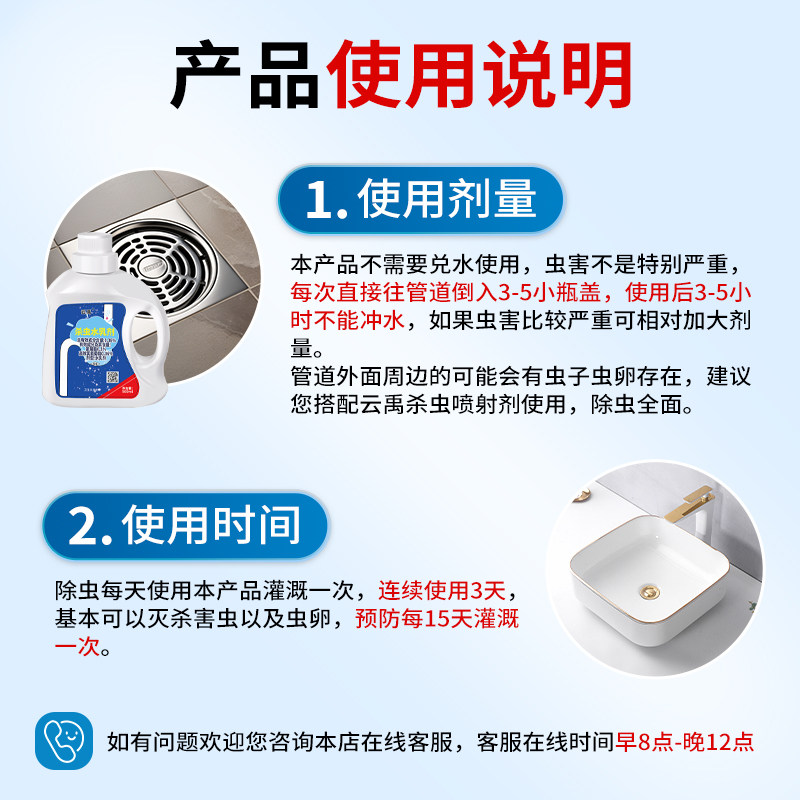 下水道杀虫剂小飞虫灭杀神器室内卫生间管道除虫剂去除蠓克星地漏