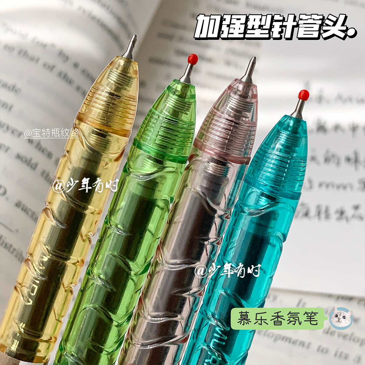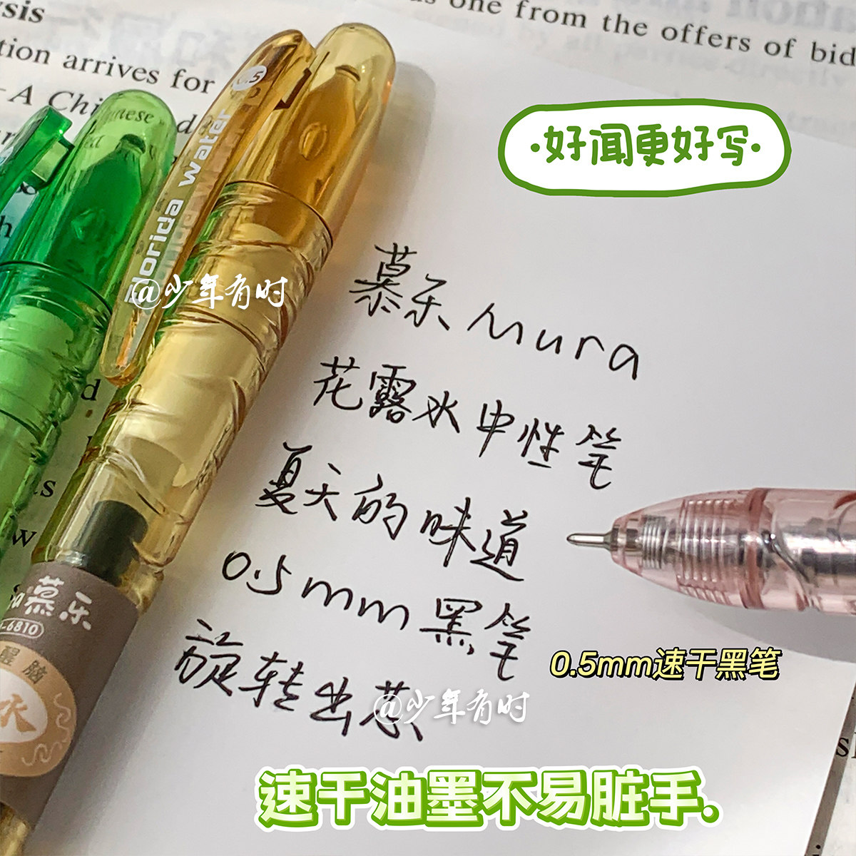 慕乐花露水香氛笔墨中性笔ins高颜值宝特瓶学生顺滑ST考试0.5黑笔