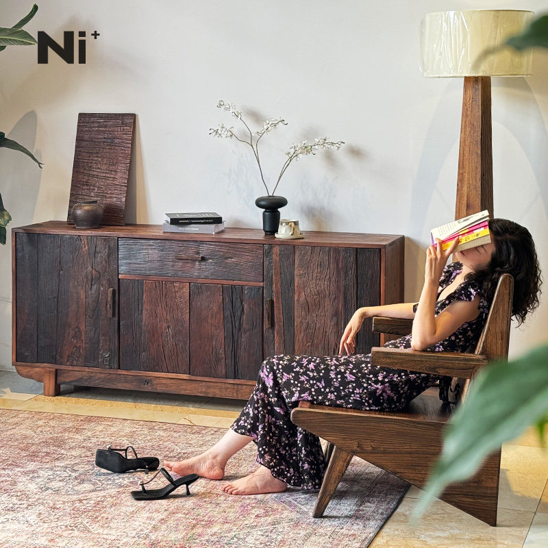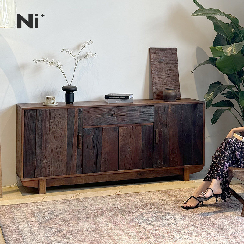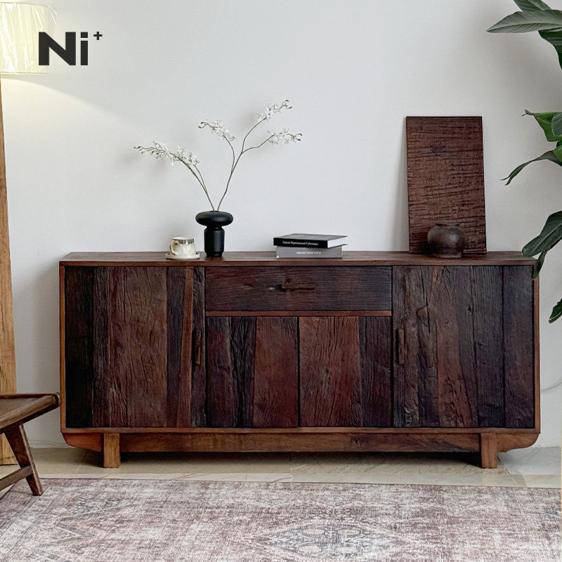 Ni尼家侘寂风实木边柜客厅中古餐边柜复古电视柜玄关收纳储物柜子