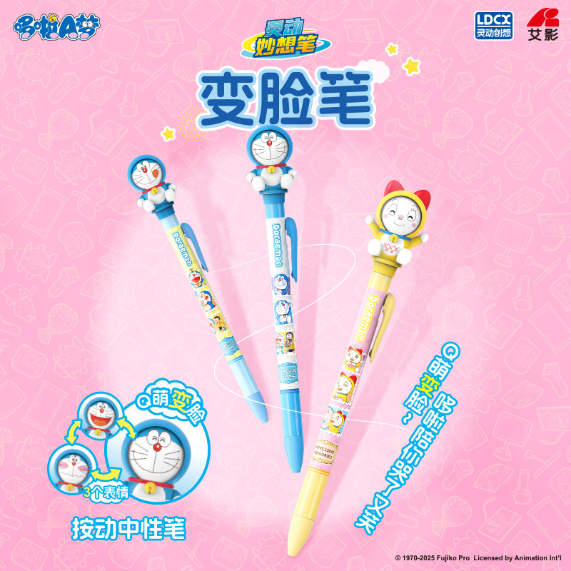 哆啦A梦变脸笔可按动黑色签字笔女生0.5mm中性水笔机器猫文具周边