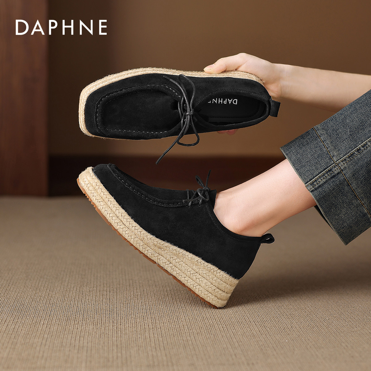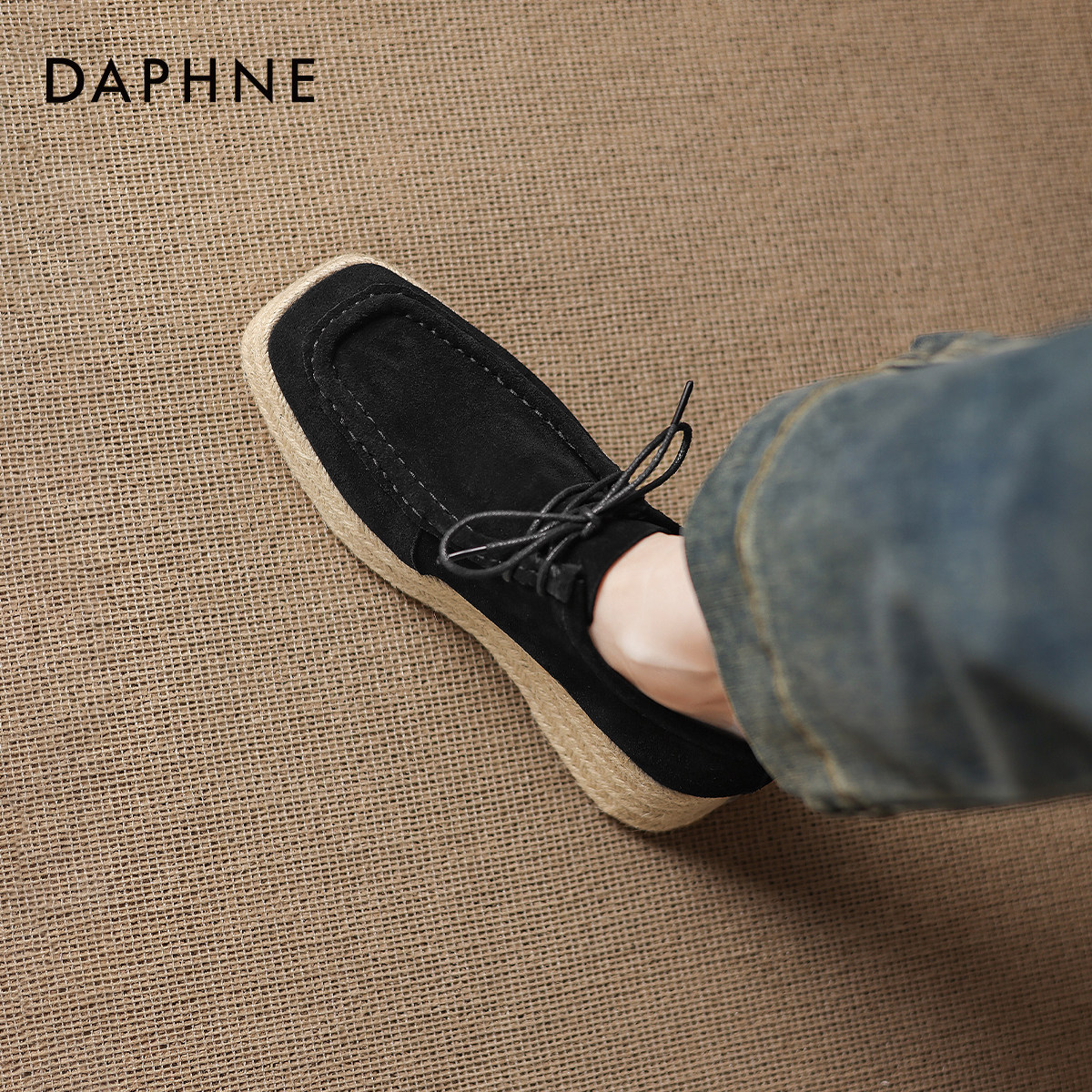 达芙妮深口单鞋女2026春季新款一脚蹬松糕鞋编织渔夫鞋厚底乐福鞋