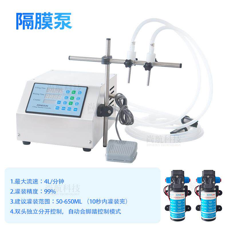 双头隔膜泵液体灌装机定量灌装果汁饮料牛奶洗手液灌装机