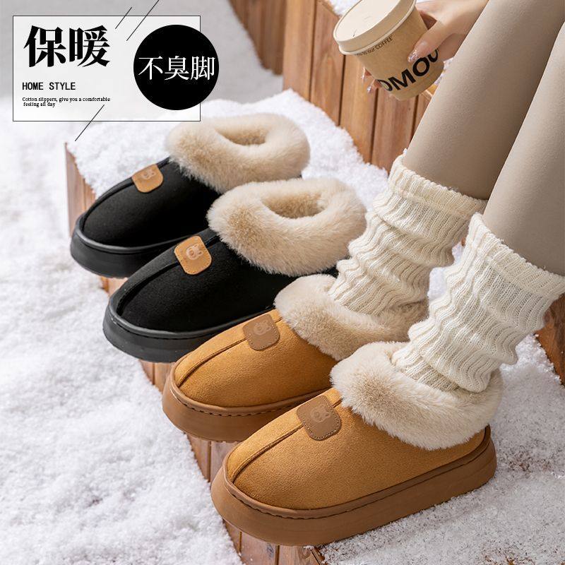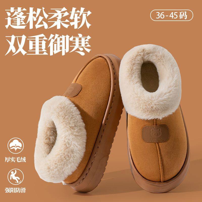 棉拖鞋女款秋冬天2024新款毛拖家居保暖加绒厚底毛绒情侣软底拖鞋