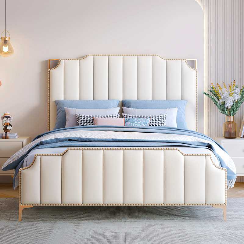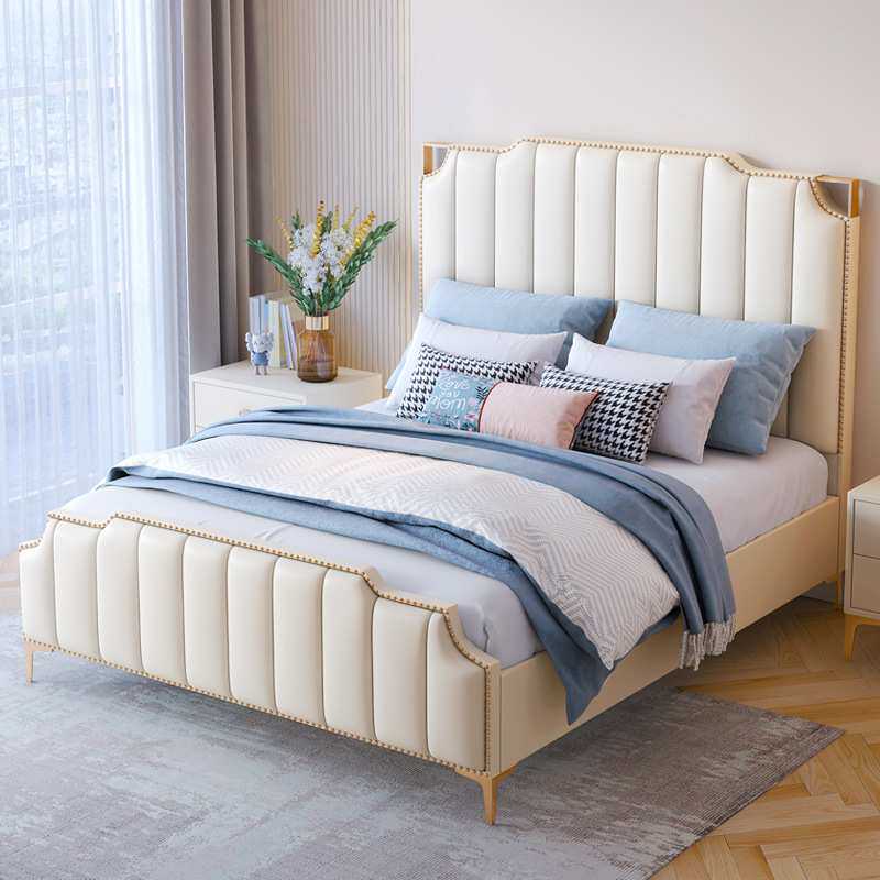 床现代轻奢风实木公主床北欧大床主卧室简约ins网红皮艺双人婚床