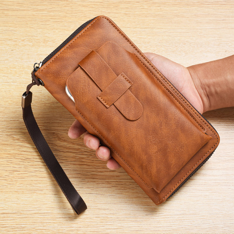 复古钱包男士长款大容量2025新款皮夹手拿包钱夹拉链手抓包手机包