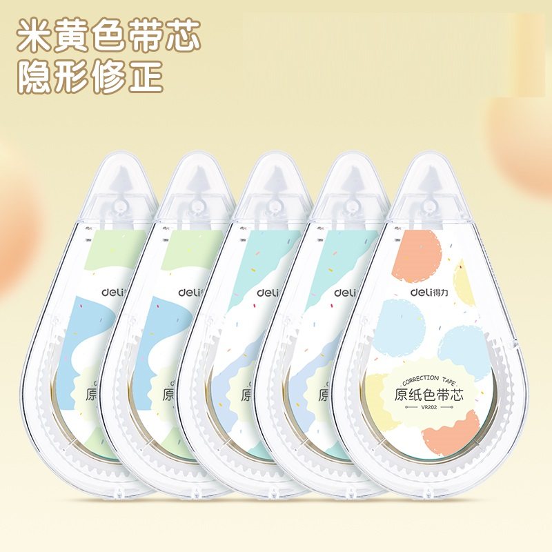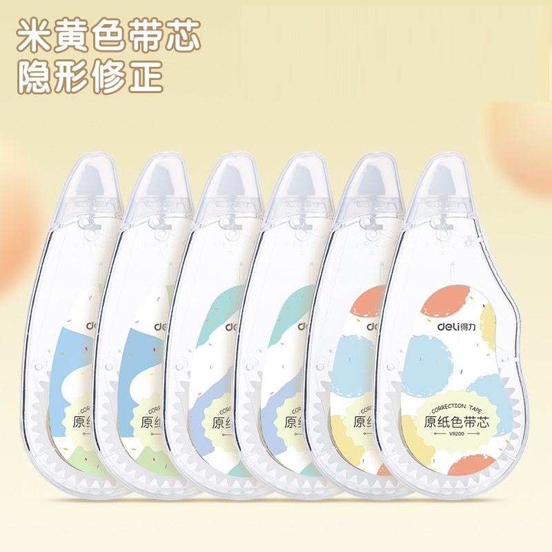 得力米黄色修正带原纸色学生用实惠装顺滑涂改带改正带修正带小学