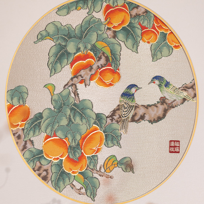 事事如意南京云锦研究所非遗手工柿子挂画餐厅装饰画玄关花鸟画