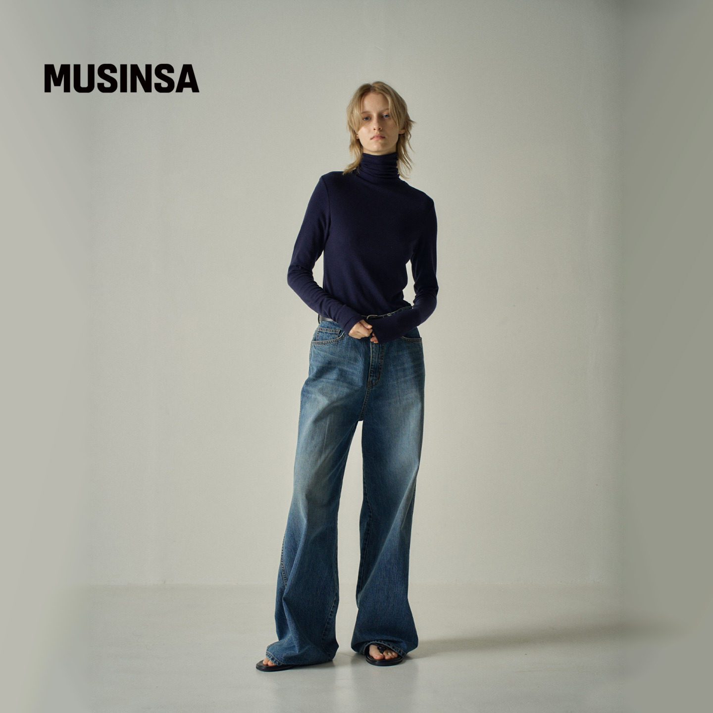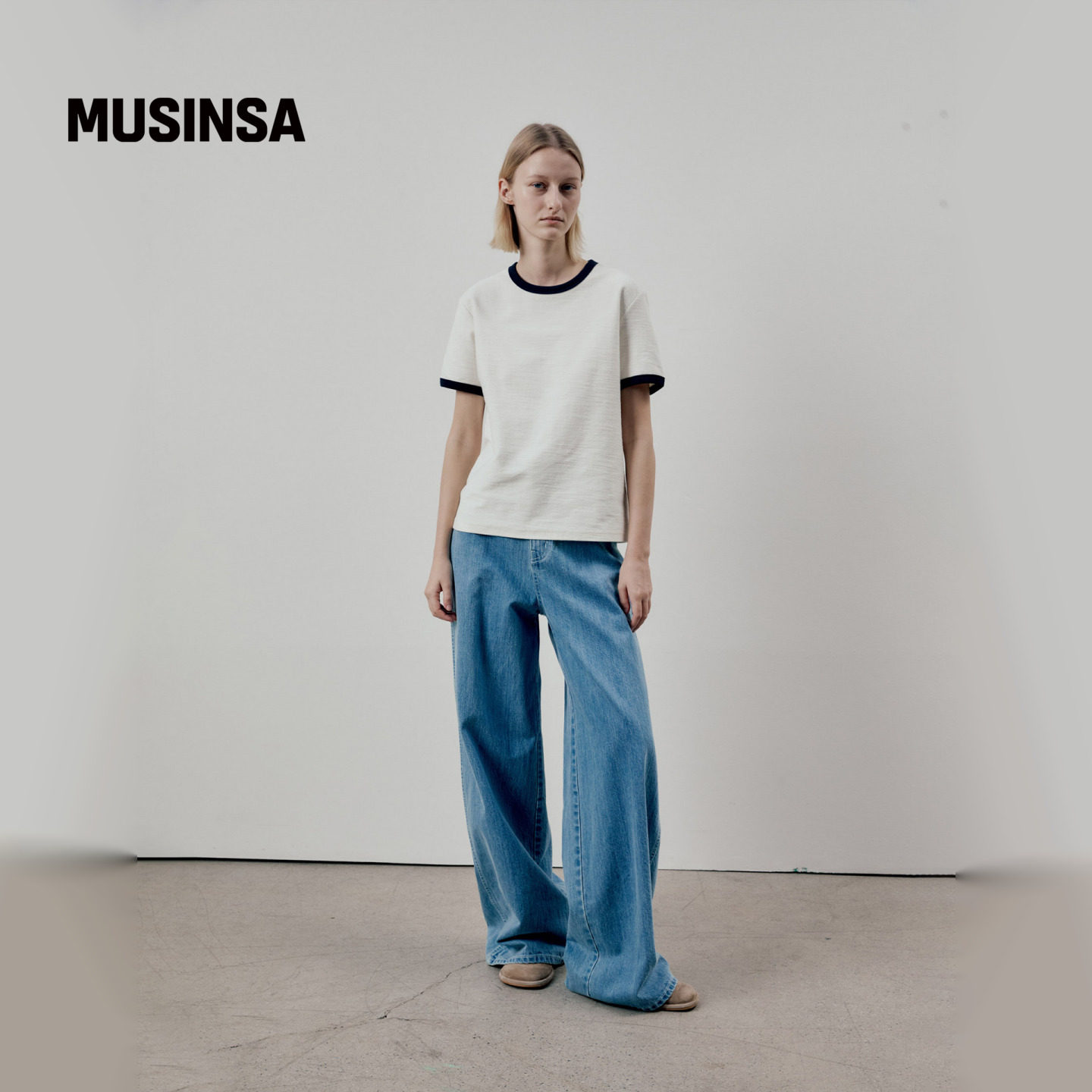FACADE PATTERN韩国25秋冬经典宽牛仔裤高腰做旧直筒裤MUSINSA